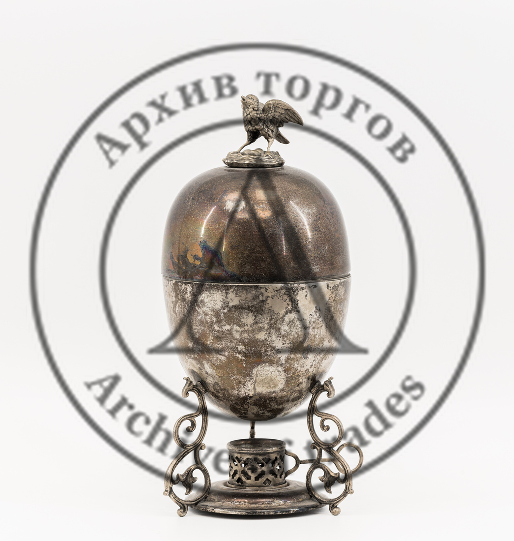 вкладкой под 4 яйца. Яйцеварка выполнена в Варшаве в кон. XIX в. (Лот 207, старт