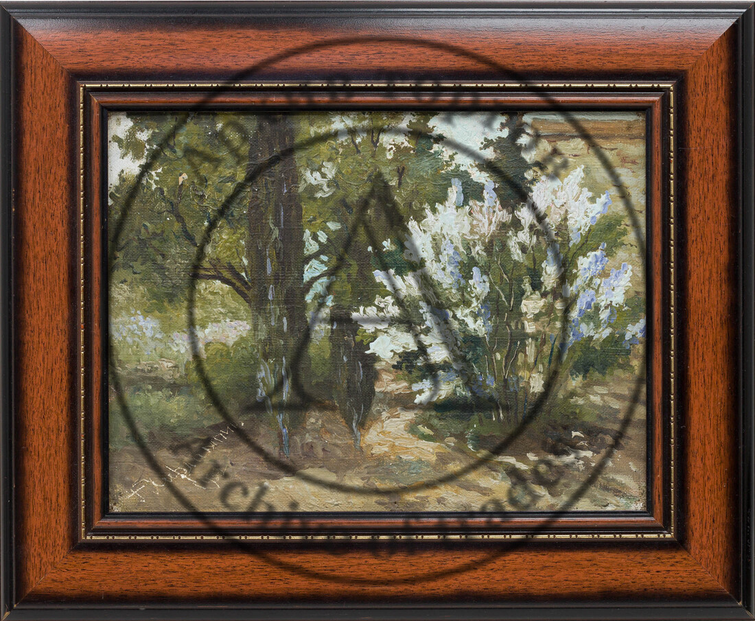 ₽). Также на аукционе представлена работа одного из ведущих советских художников середины XX в. — Г. Нисского «Зелёная опушка», 1952 г. Лёгкий летний пейзаж с бегущими облаками написан с натуры — легко и профессионально (лот 42, старт 90 000