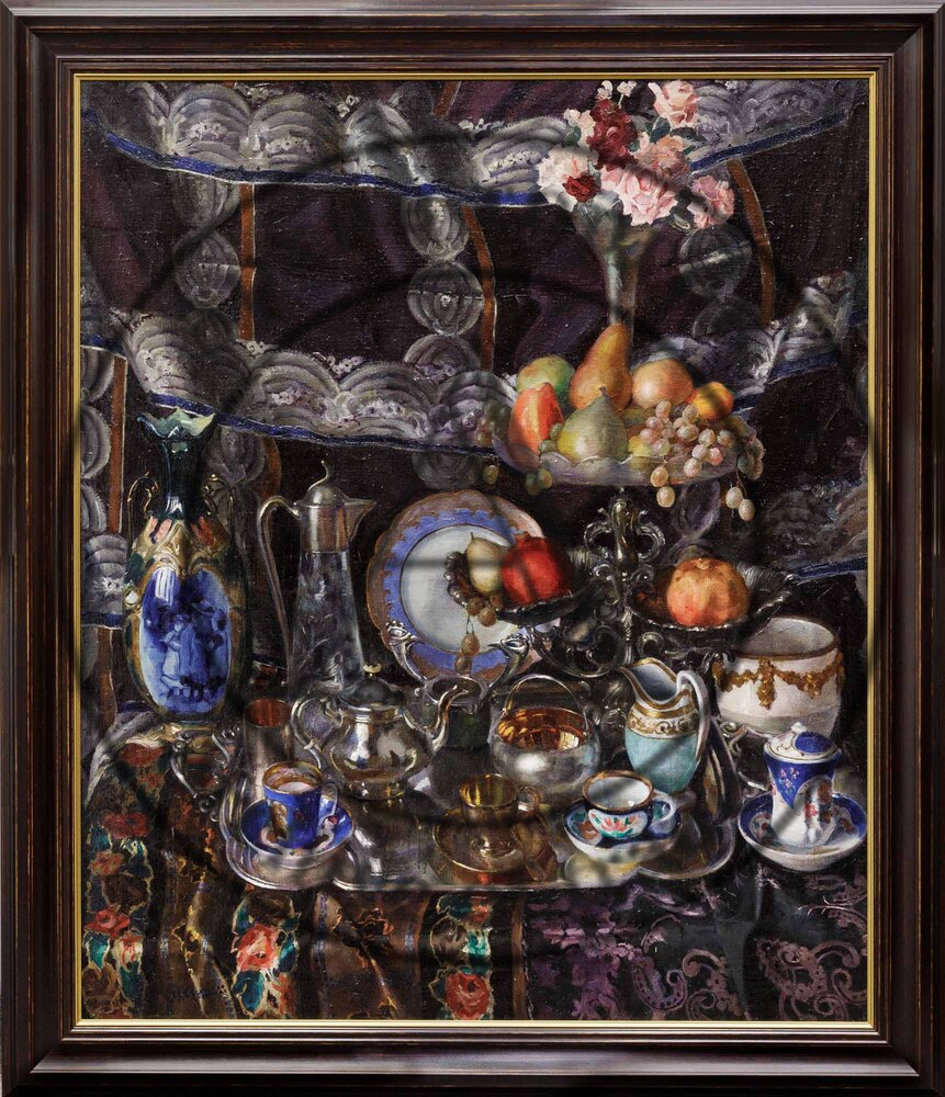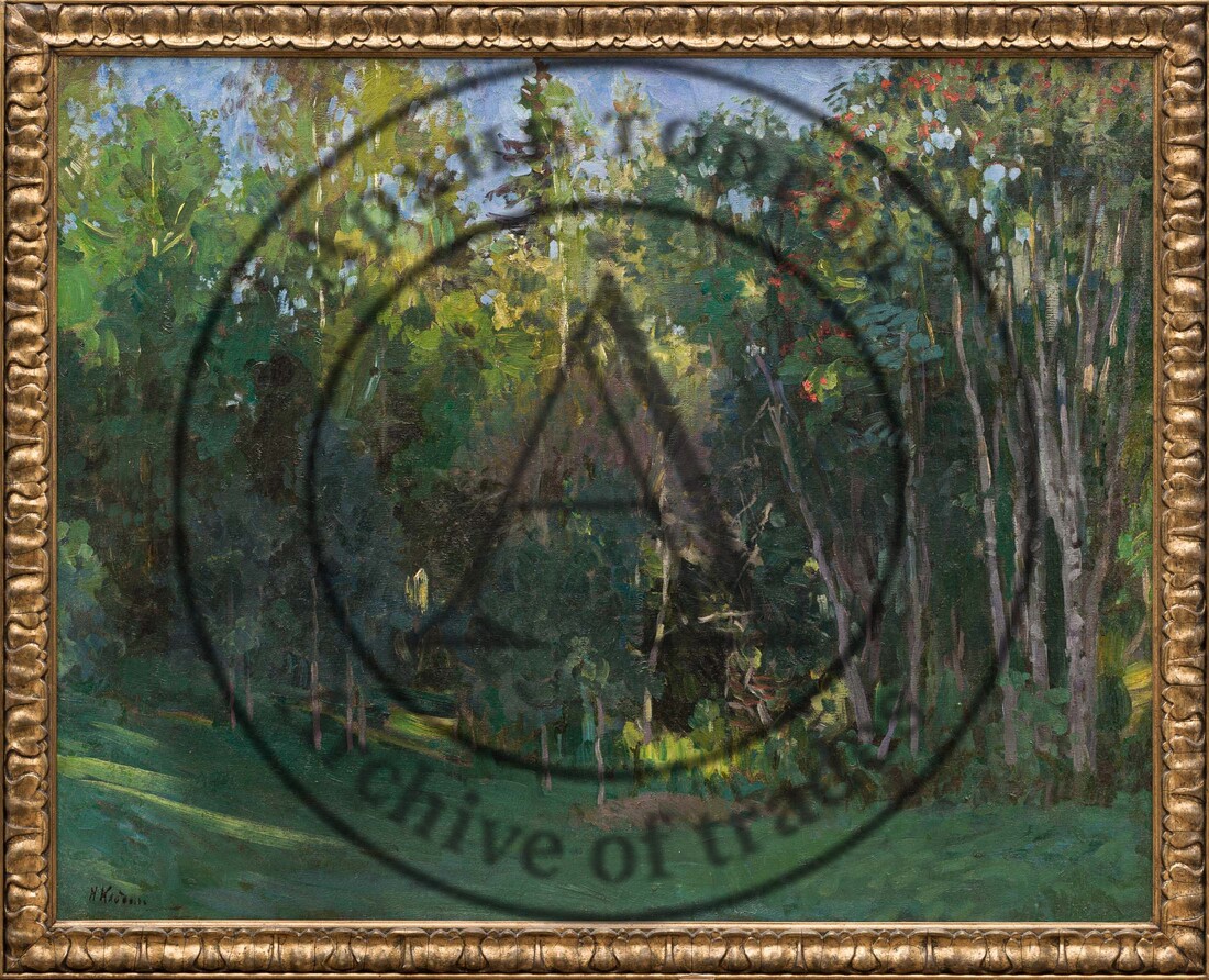 И, наконец, пейзаж выдающегося художника Н. А. Клодта «Вечер», 1910-х гг. Масштабное полотно а ля прима, со всеми характерными чертами пейзажной живописи объединения «Союз русских художников»: виртуозная техника с элементами импрессионизма, присущая театральность, колористическая гармония и, в целом, примат цвета над линией — всё вылеплено цветом (лот 29, старт — 4 000 000 руб.).