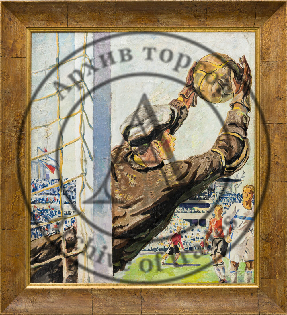Советский период представлен фактически одной работой 1930–1940-х гг. — «Футбол» В. С. Иванова. Очевидно, художник находился под сильным влиянием А. Самохвалова. Диагональная композиция переднего плана задаёт резкое движение — это словно запечатлённый кадр фотохроники времени (лот 36, старт — 500 000 руб.).