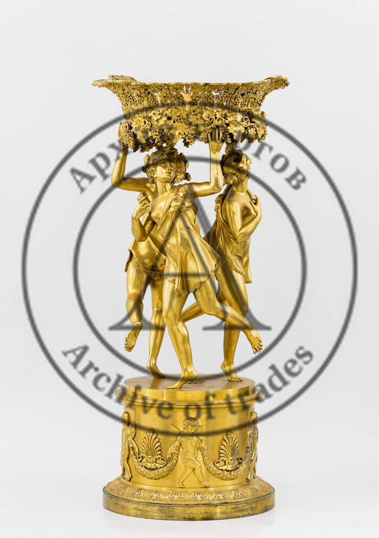 Подставка с фигурами трёх пляшущих вакханок, Франция, Париж, мастерская П.-Ф. Томира, нач. 1840-х гг. Аналогичные изделия представлены в собраниях Государственного Эрмитажа и Государственного исторического музея (лот 42, старт — 1 500 000 руб.).