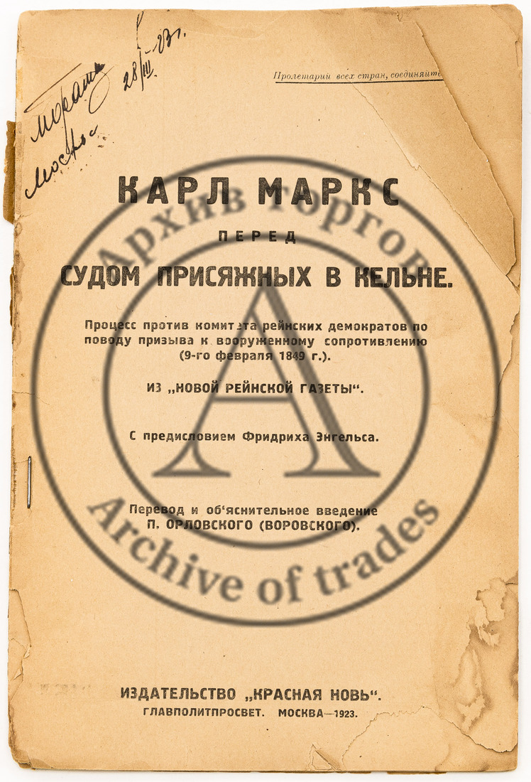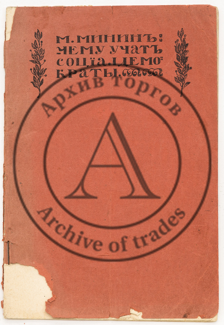 Сохранность: надрыв обложки в месте крепления скрепки; владельческие пометки на стр. 20; штампы и пометки книжного магазина на оборотной обложке.