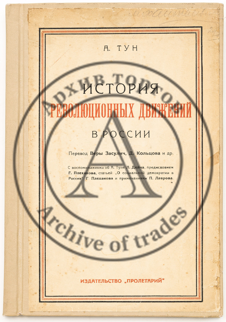 Сохранность: ржавчина в местах крепления скрепок; штампы и пометки книжного магазина на оборотной обложке.