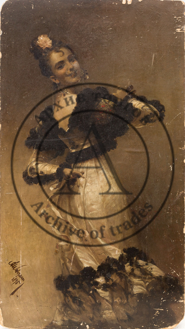 Сохранность: замины и надрывы по краям переплета; трещина по корешку; затеки на первых листах; штамп и пометки книжного магазина на оборотной обложке.