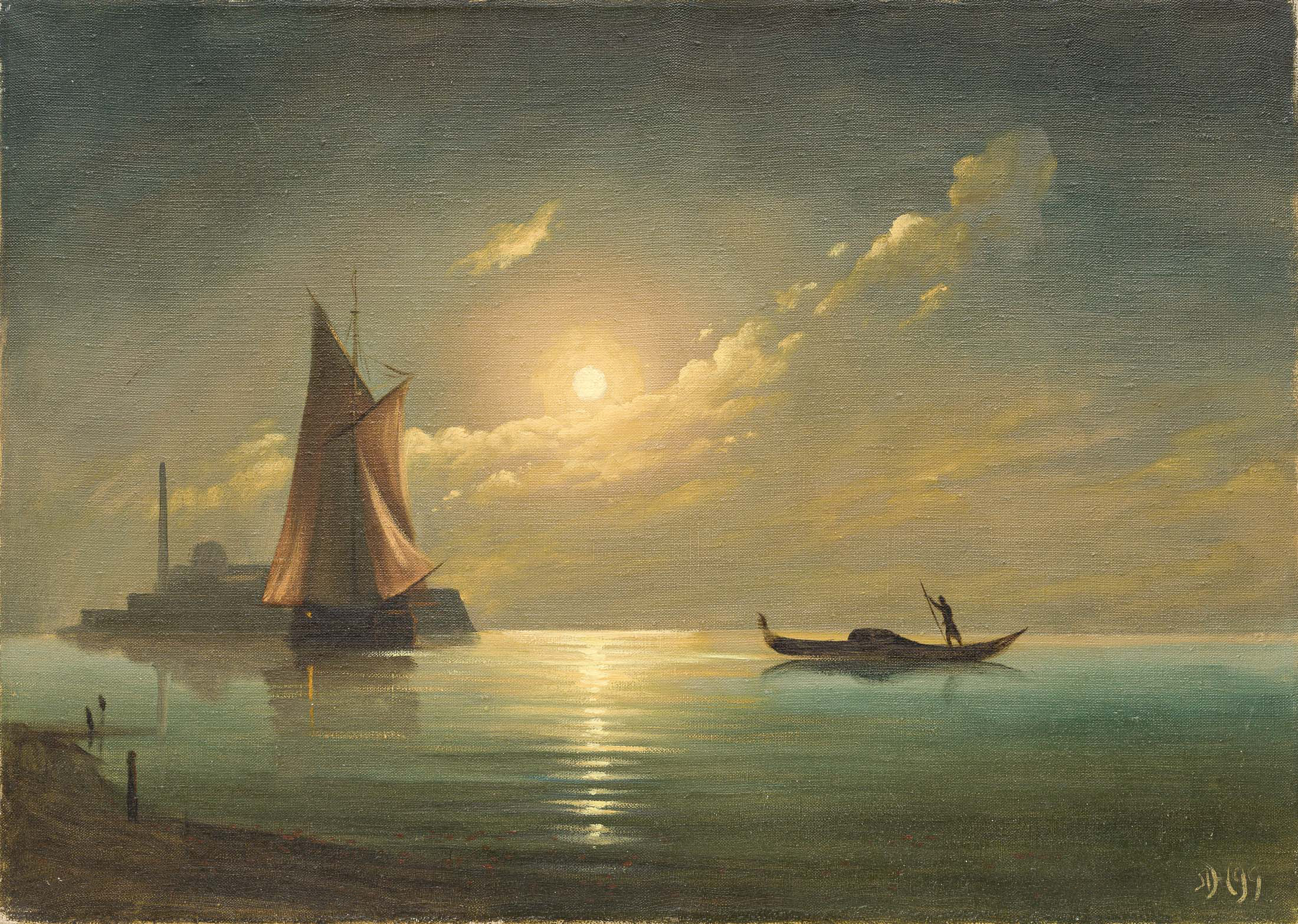Пейзаж Н. Бажина «Весенний вечер», кон. XIX в., выдает ученика и последователя А. Куинджи. Графичность и лаконичность немногих композиционных элементов противопоставлены тающему розовому мареву вечернего света (Лот 18, старт 400 000 руб.).