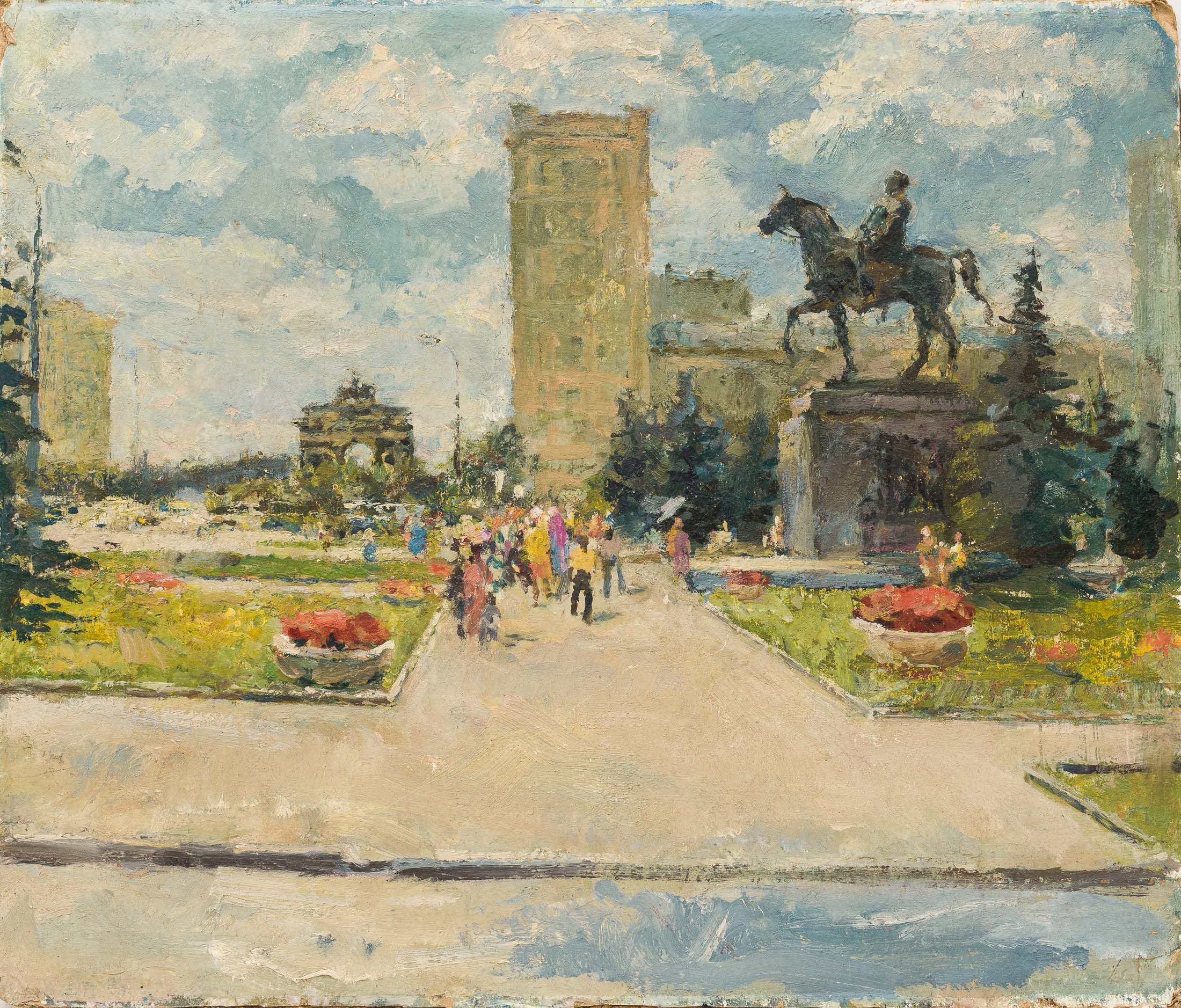 Важной темой для многих поколений художников остаётся Москва — неисчерпаемый источник вдохновения, признания в любви к её архитектуре, зелёным дворам, памятникам, бульварам. На картине В. Назарова конца 1970‑х гг. запечатлён Кутузовский проспект с Триумфальной аркой на фоне и памятником Михаилу Кутузову (Лот 35, старт 120 000 руб.); другой лот на ту же тему — диптих И. Обросова «Москва», 1980‑е гг., один из топ‑лотов аукциона (Лот 44, старт 1 000 000 руб.).