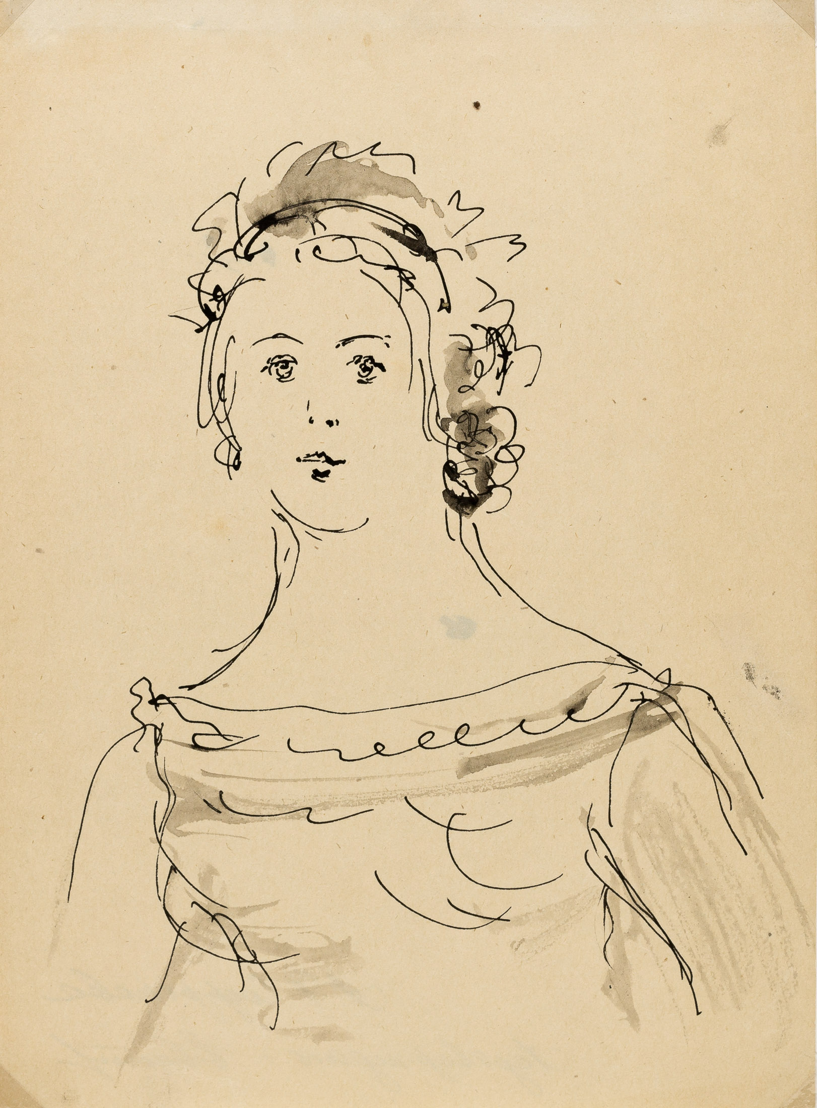 Два рисунка тушью А. Сафроновой выполнены в 1930‑е гг. Это лёгкие минутные зарисовки пером в несколько касаний; линии уверенные, быстрые, а образы полны ностальгии по пушкинским временам (Лоты 33, 34, старт от 50 000 руб.).