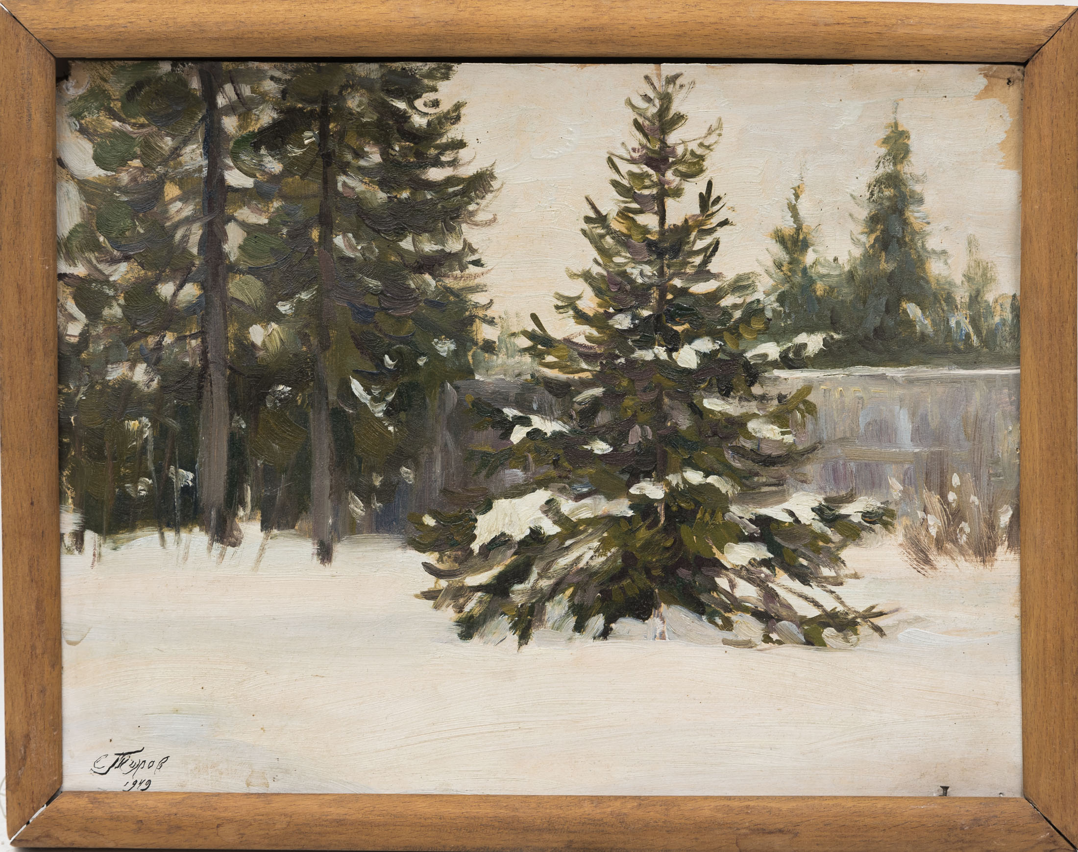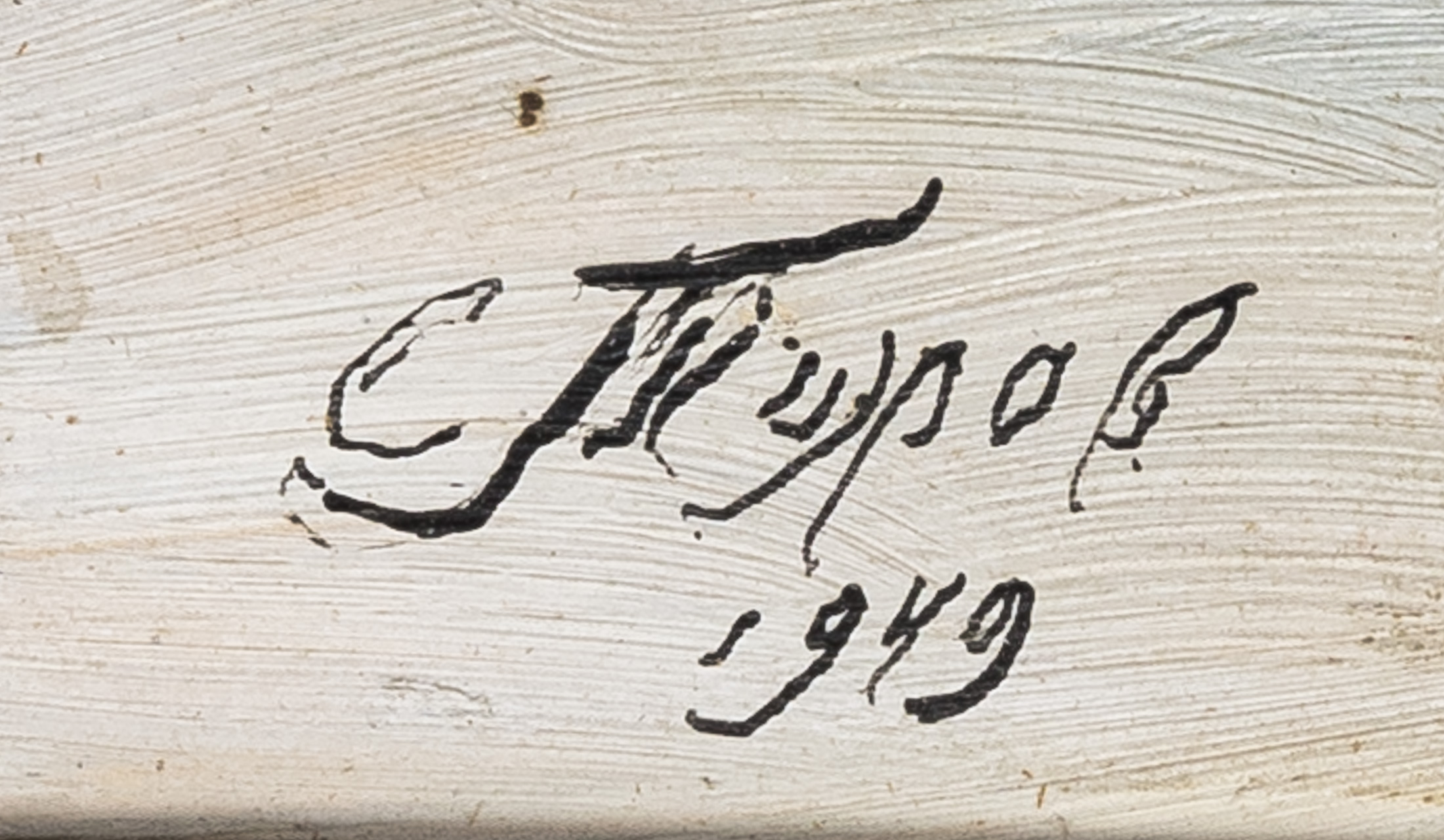 СССР, 1949 г. Картон, масло. 23 Х 30 см. Подпись и дата слева внизу. В раме. Повреждения.