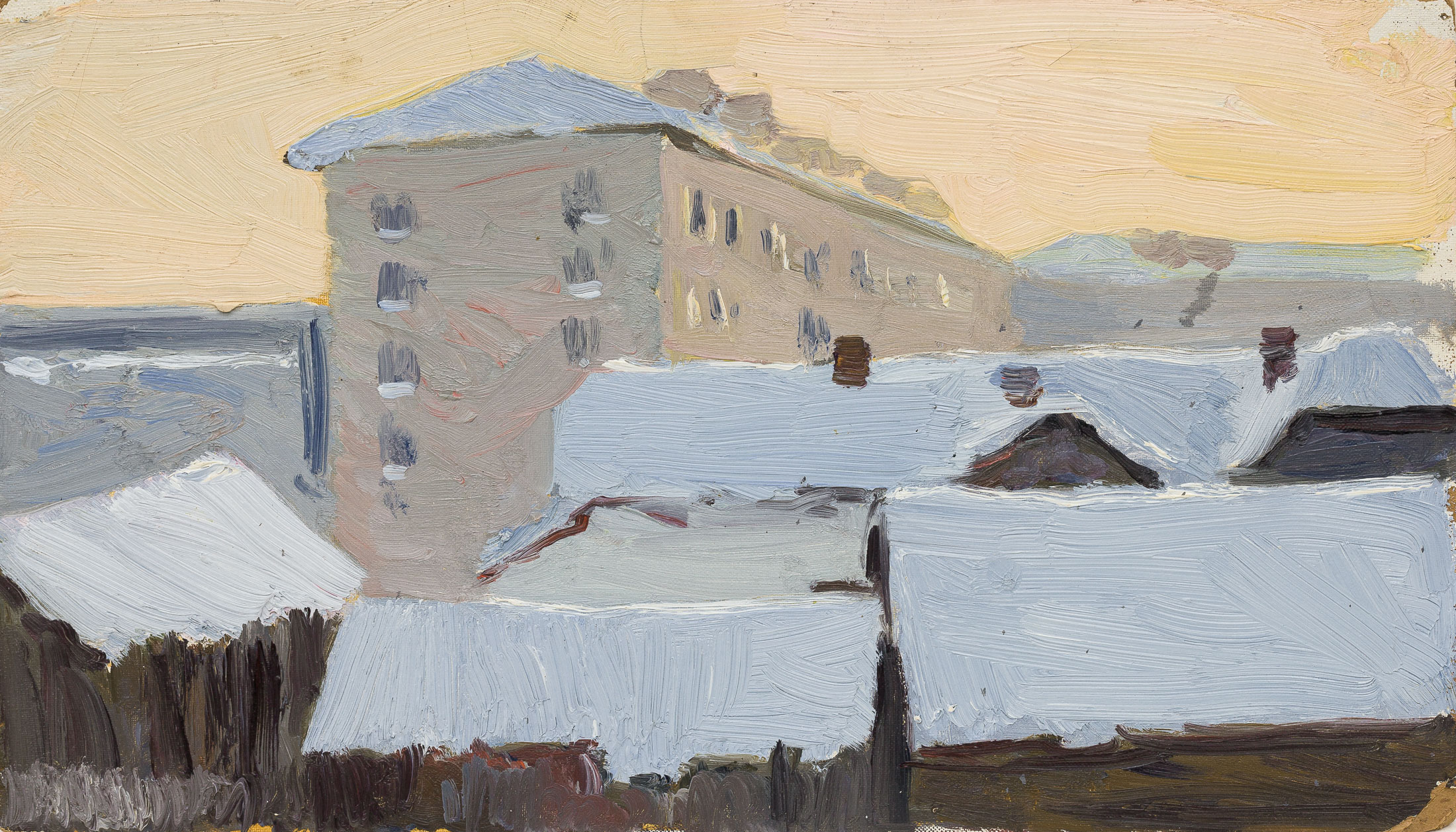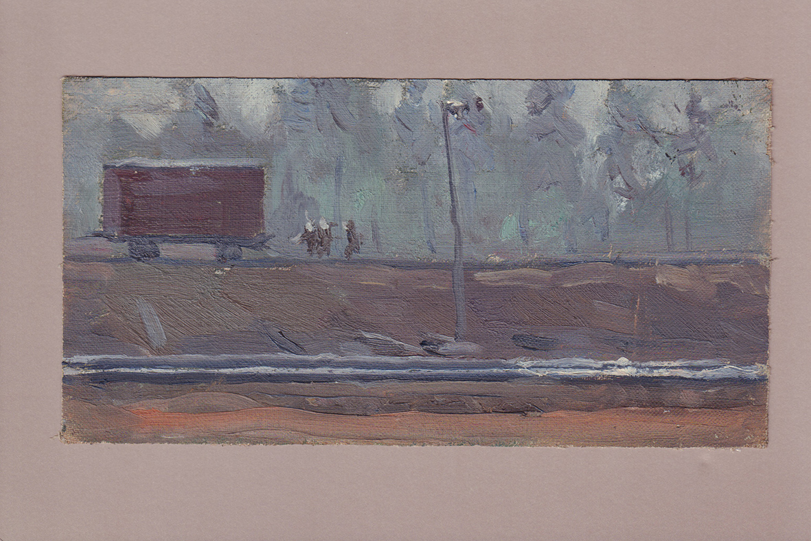 Дородницын В.П. Оцепленный вагон. СССР, 1960-е годы. Холст на картоне, масло. 18 Х 26,5 см.