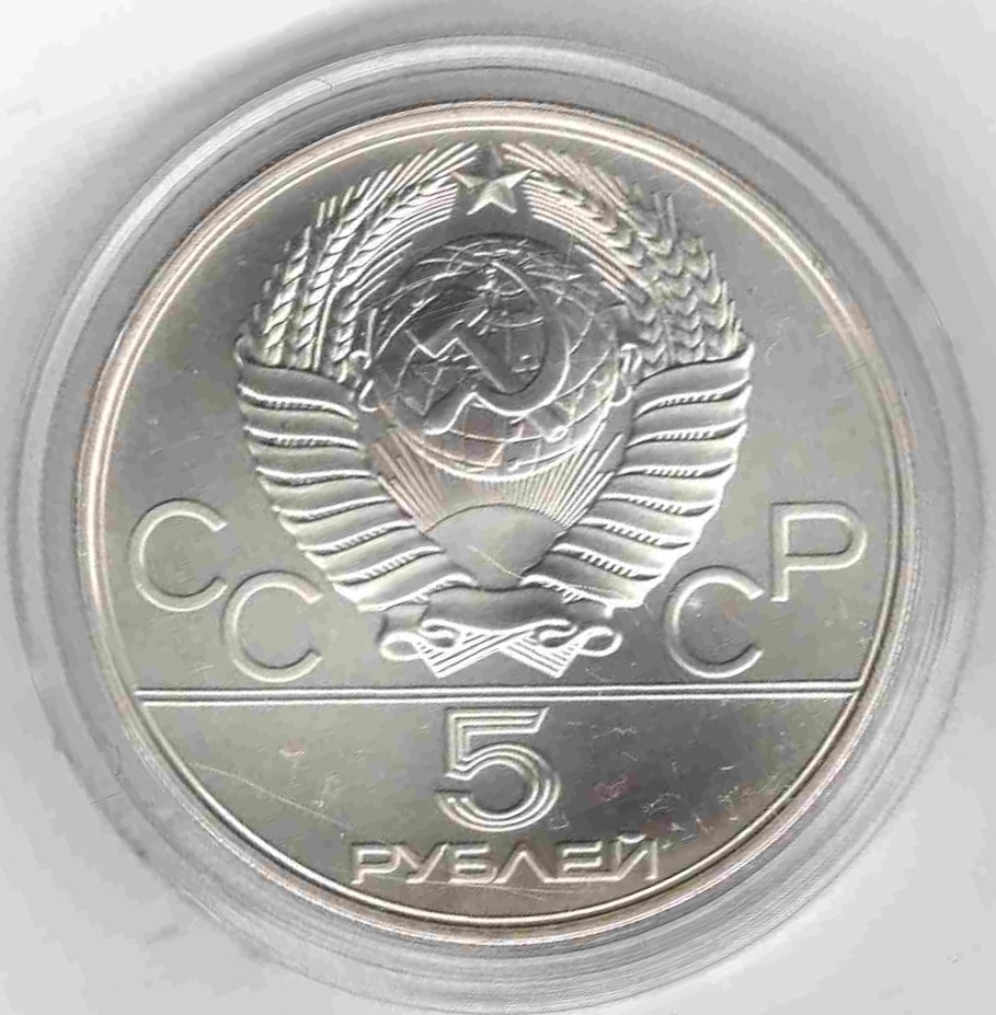 5 рублей. Олимпиада 80. Штанга