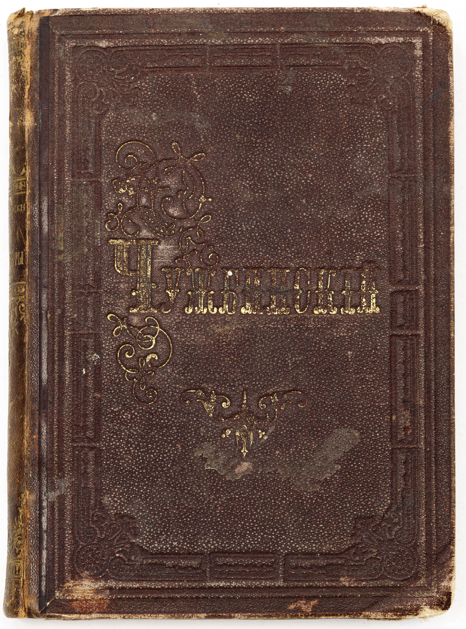 Сохранность: потертости переплета; небольшая трещина в нижней части корешка; угасшее золотое тиснение на лицевой обложке; залом и надрывы свободного листа форзаца; трещины по форзацу и нахзацу; «лисьи пятна»; загрязнения некоторых страниц; утрата небольших фрагментов на полях нескольких листов (стр. 155-158 утраты подклеены бумагой); штамп и пометки книжного магазина, владельческие пометки на обороте нахзаца.
