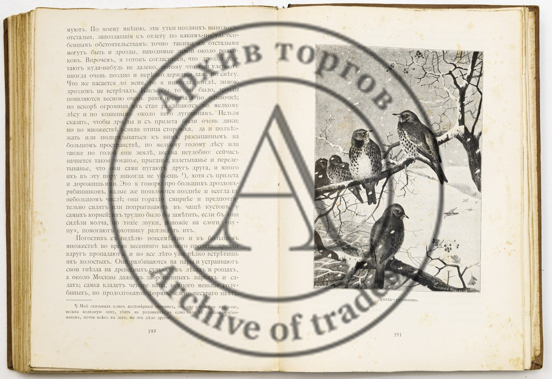 Сохранность: загрязнения переплета; хромолитографии утрачены; подшит один лист цв. ил. из другого издания; реставрация форзацев и нахзацев; загрязнения страниц.