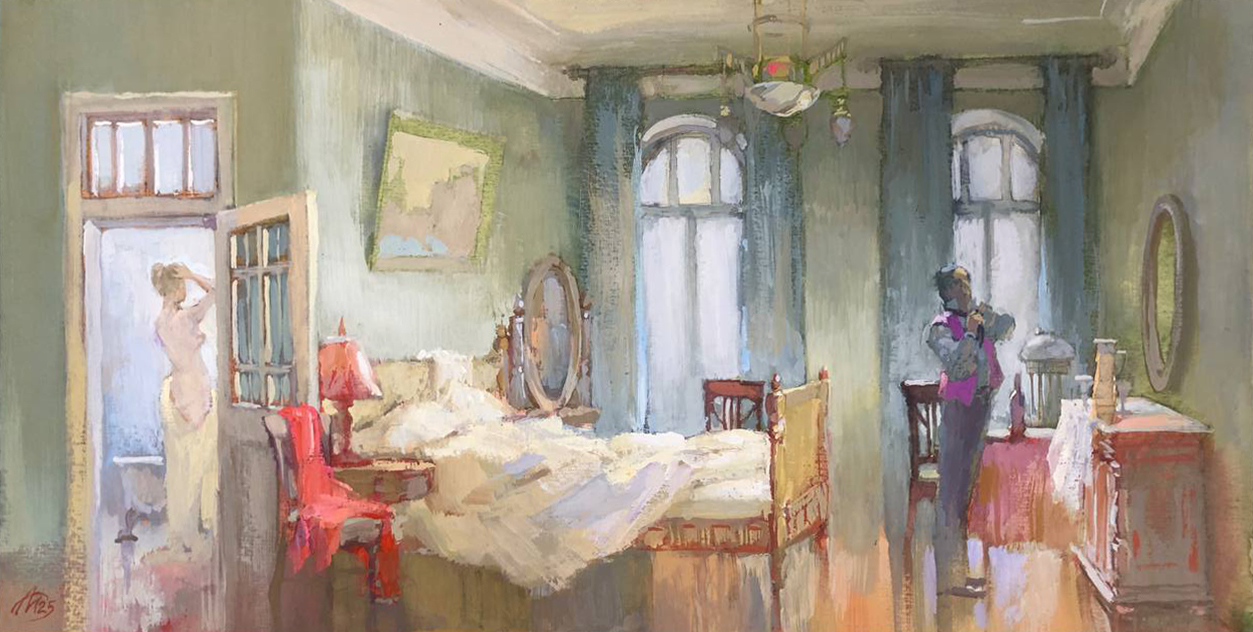 Россия, 2025 г. Картон, темпера, гуашь. 23,3 Х 43,7 см. Подпись и дата справа виз.