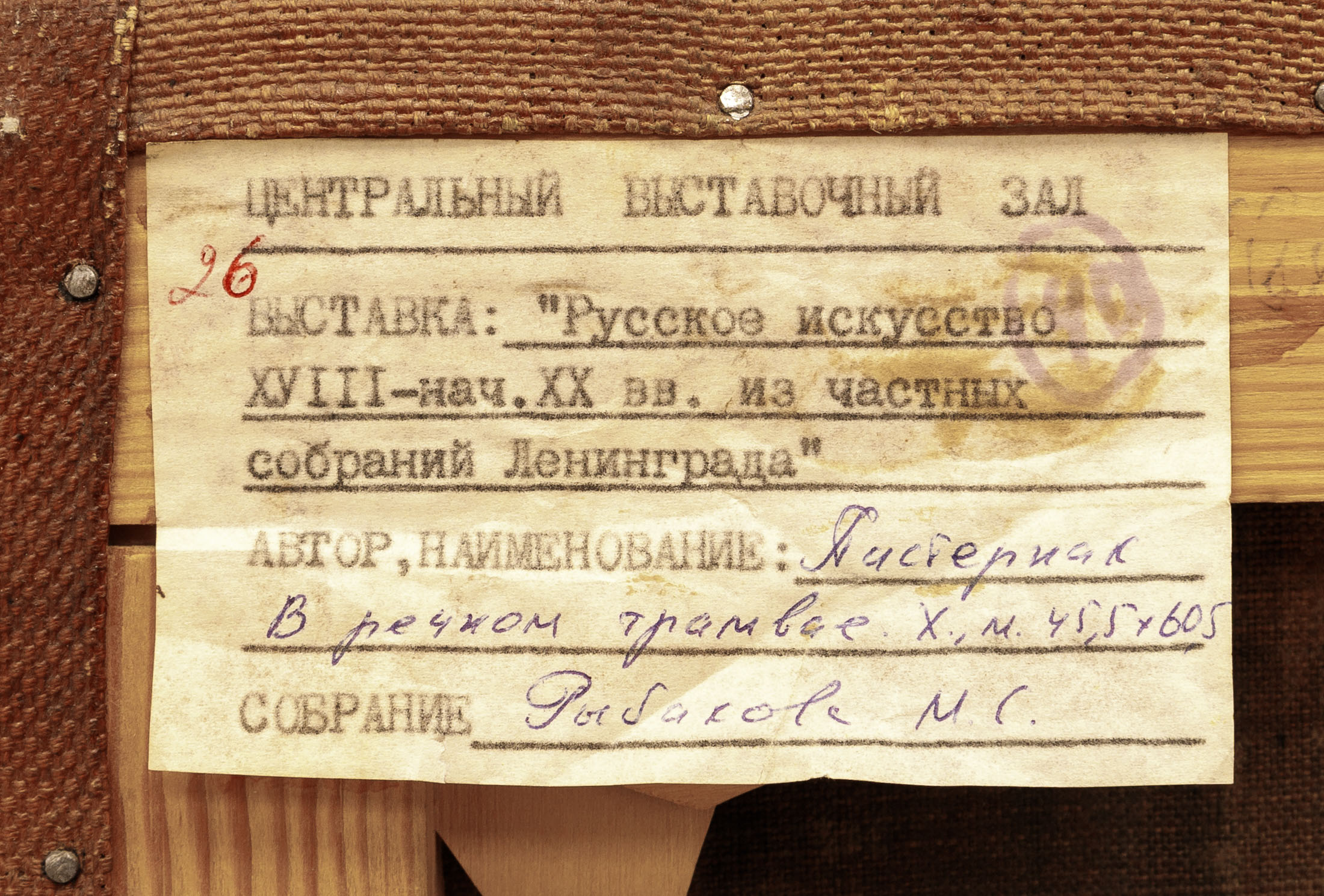 Картина экспонировалась на выставке «Русское искусство XVIII- начала ХХ века из частных собраний Ленинграда» в 1988 году. Приведена в приложении к каталогу (Русское искусство XVIII — начала ХХ века из частных собраний Ленинграда: каталог выставки». Л.: Художник РСФСР, 1988)