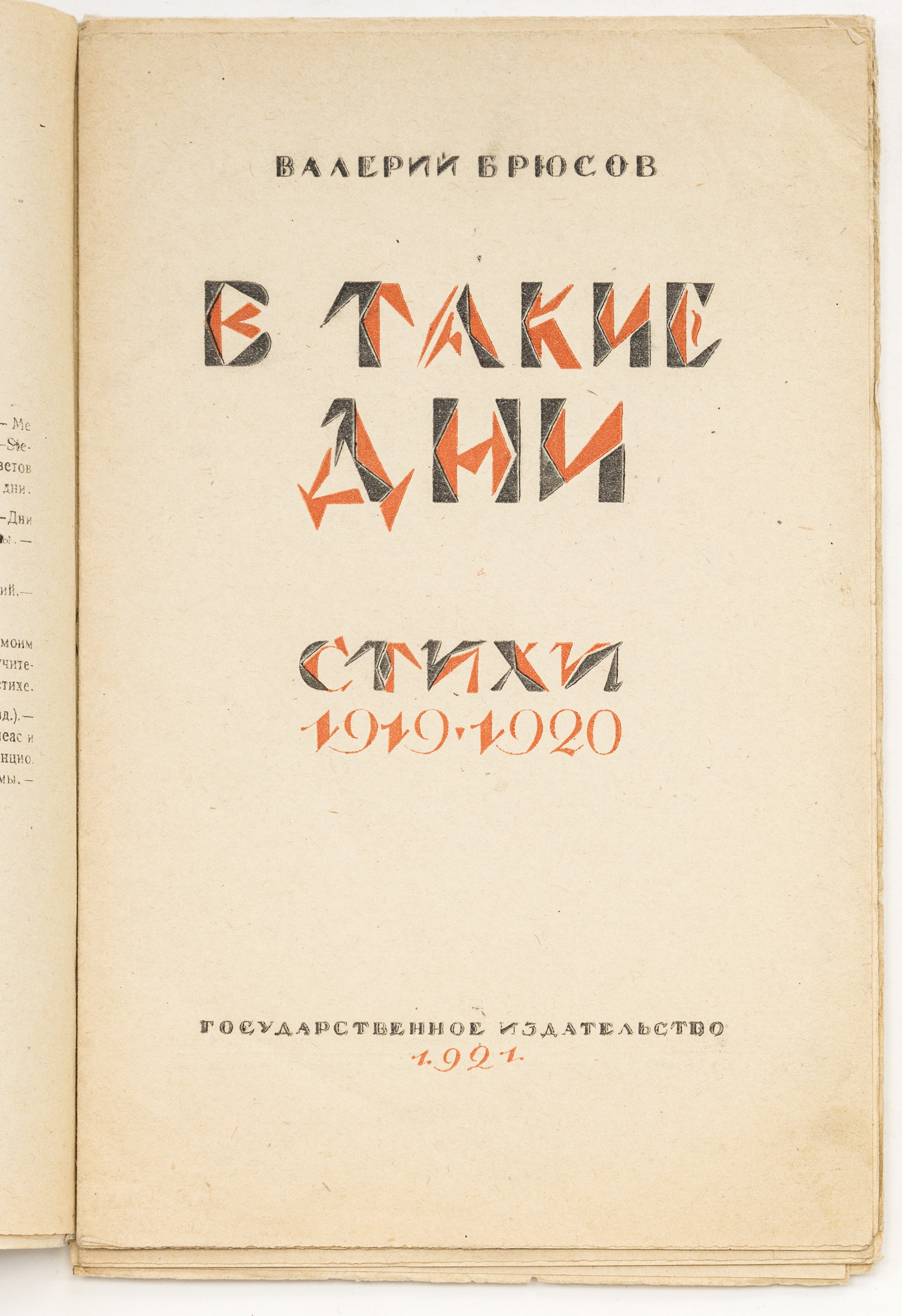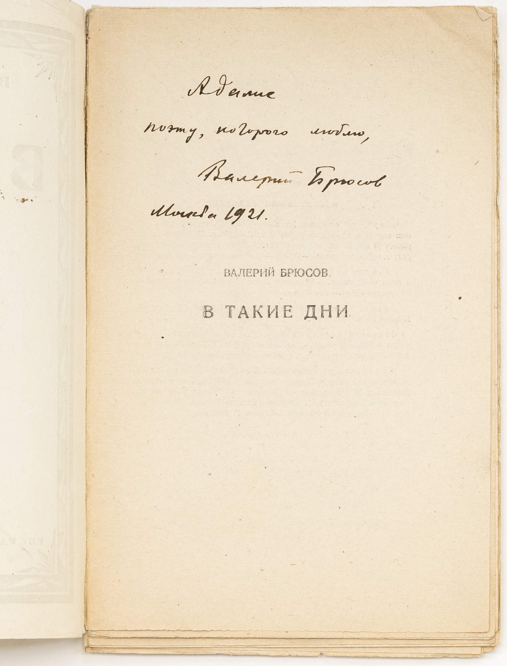 [Автограф автора] Брюсов В.Я. В такие дни: Стихи. 1919-1920