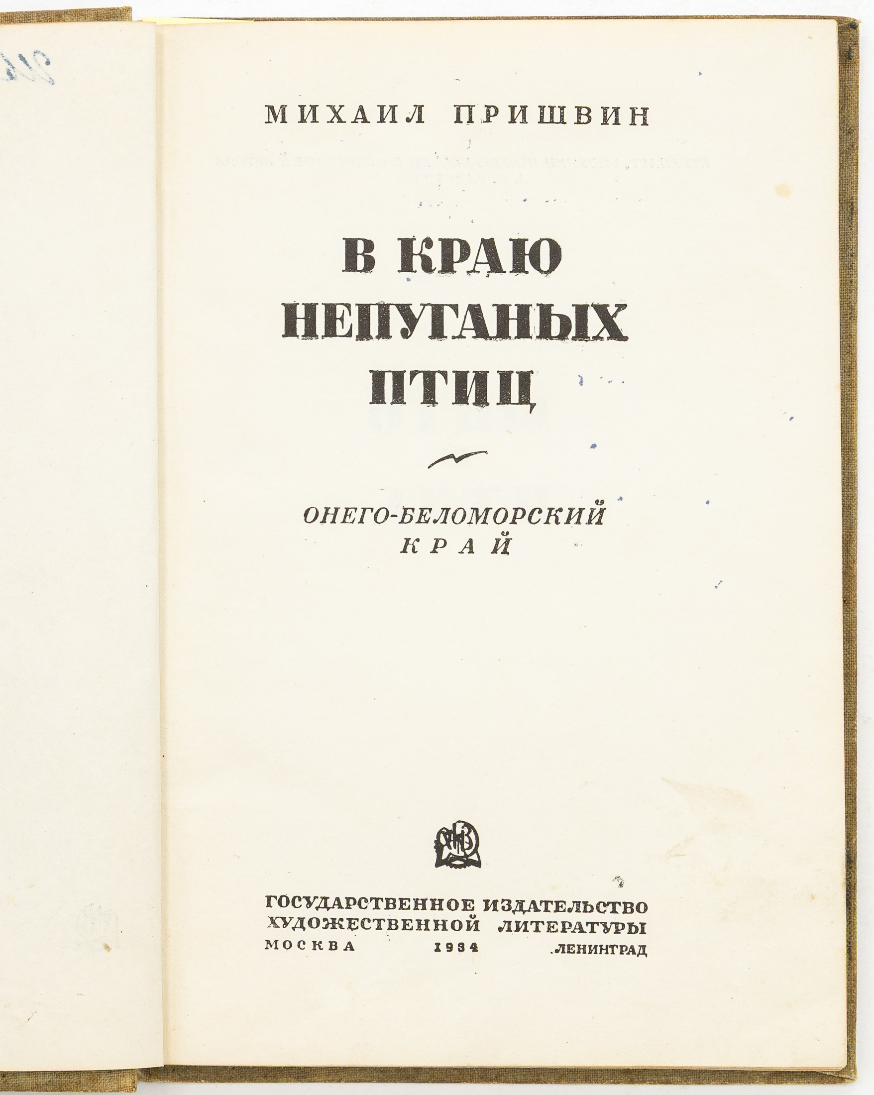 [Автограф автора] Пришвин М.М. В краю непуганых птиц: Онего-Беломорский край