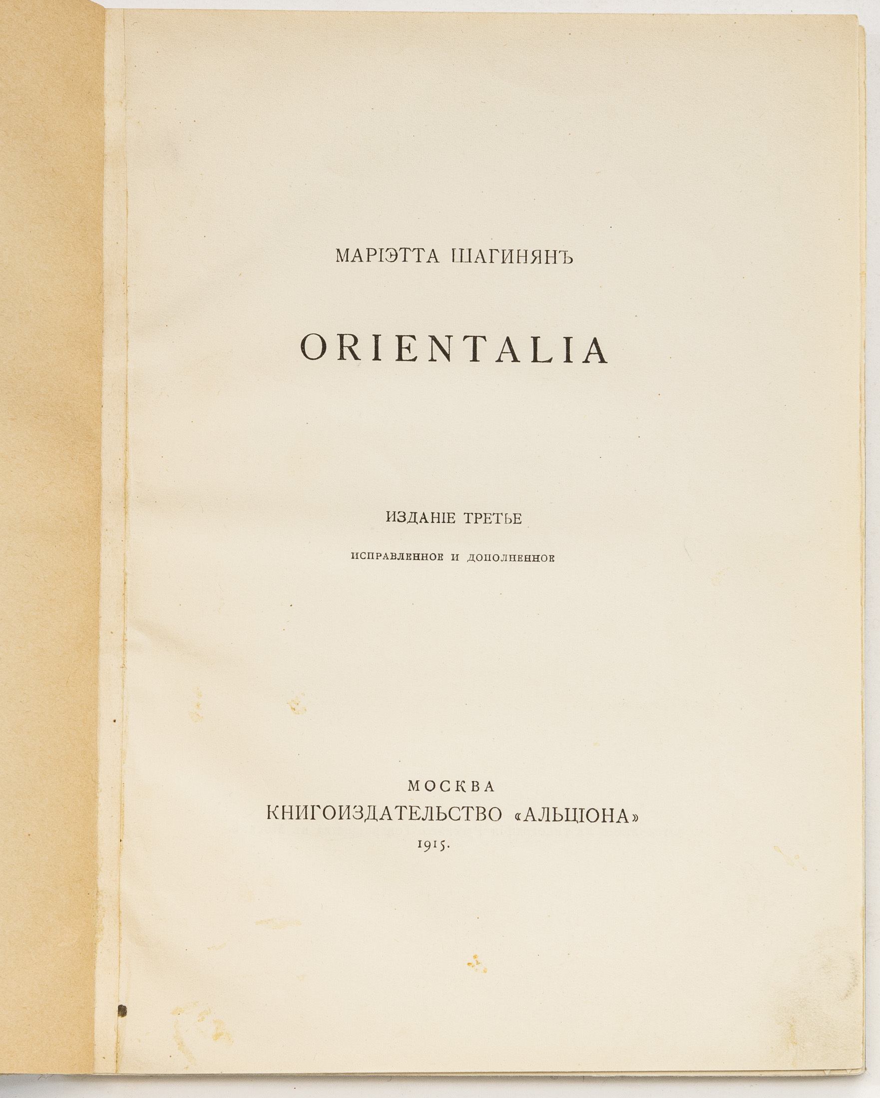 На форзаце дарственная надпись автора: «Тот трижды лжив, кто тороплив, / В ком сердце жадно и забвенно! / Ни знойных лоз, ни сладких слив / Не золотит Господь мгновенно… / Из старой «Orientalia» / на добрую память / Евгению Винокурову / Мариэтта Шагинян / 24/I 1974».