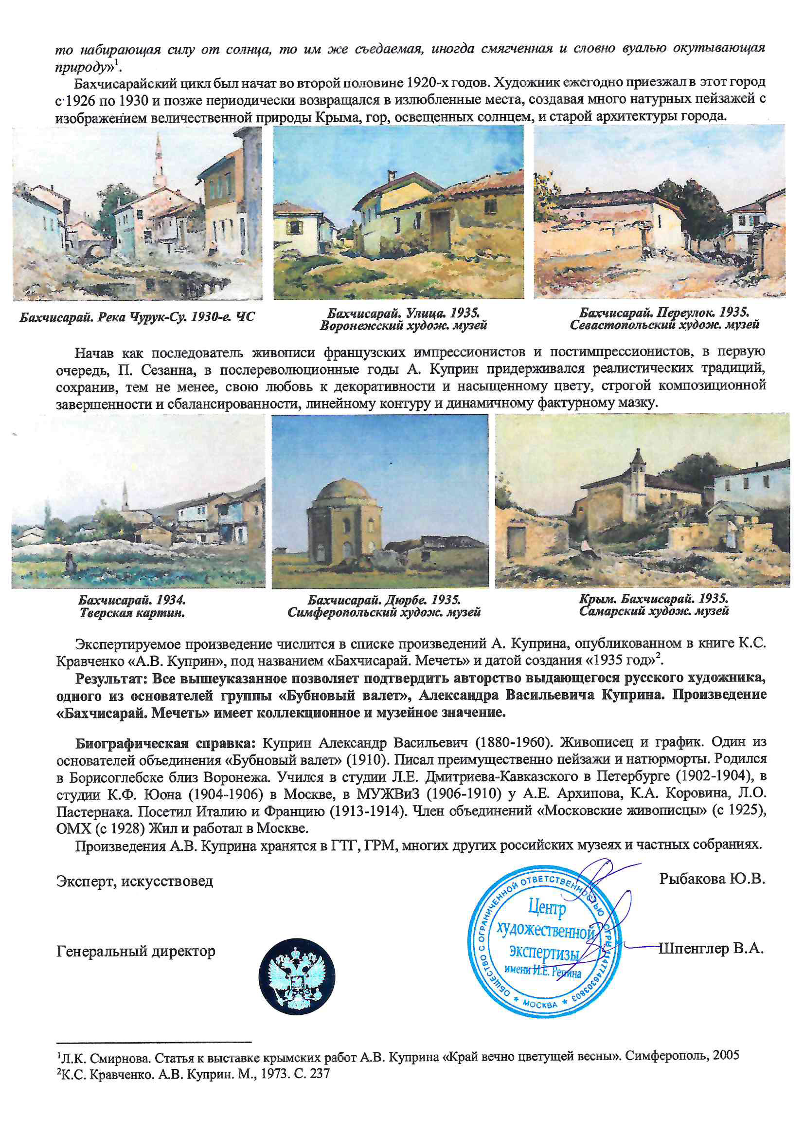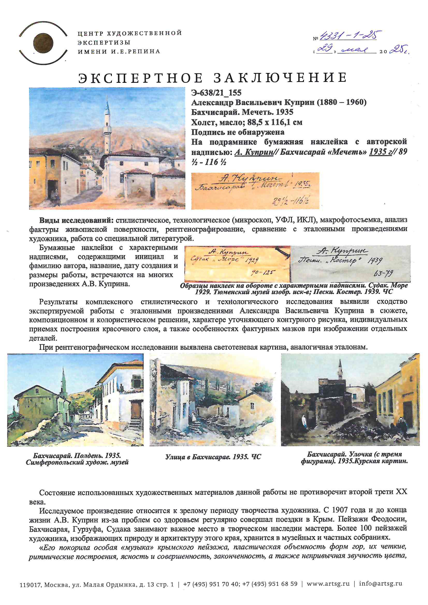 Экспертное заключение ЦХЭ им. Репина (эксперт Рыбакова Ю., 2025 год)