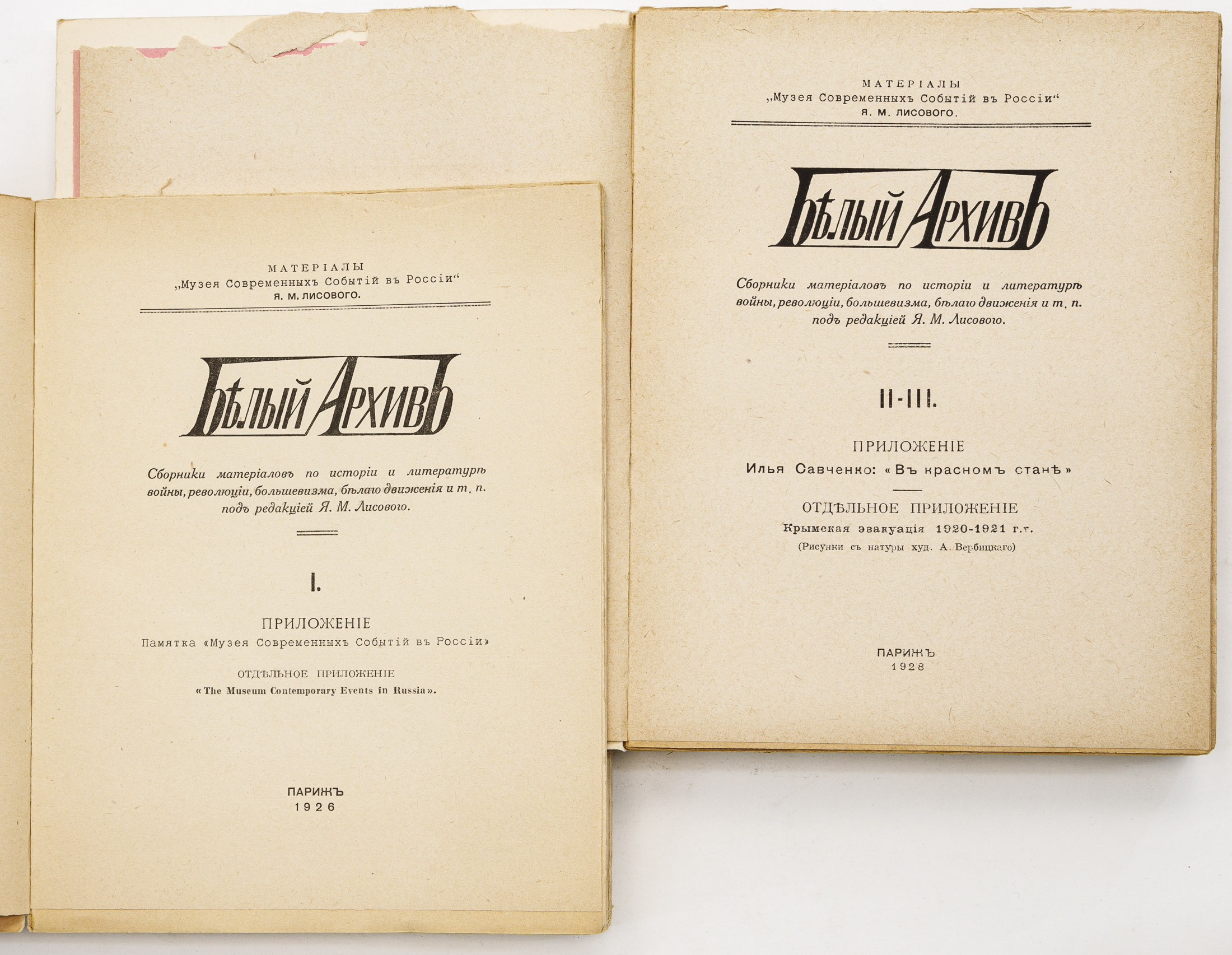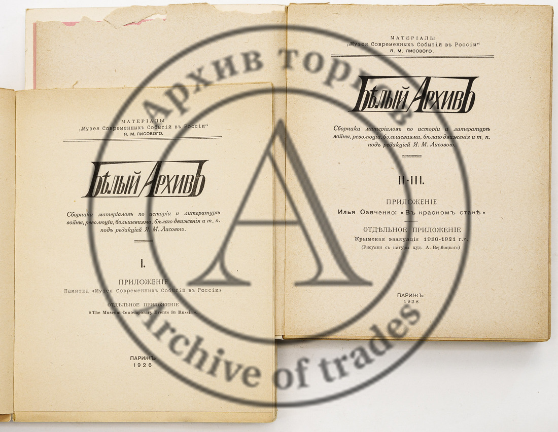 Белый архив: сборники материалов по истории и литературе войны, революции, большевизма, белого движения и т. п. / под ред. Я.М. Лисового, Вып. I-III