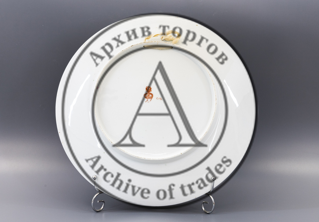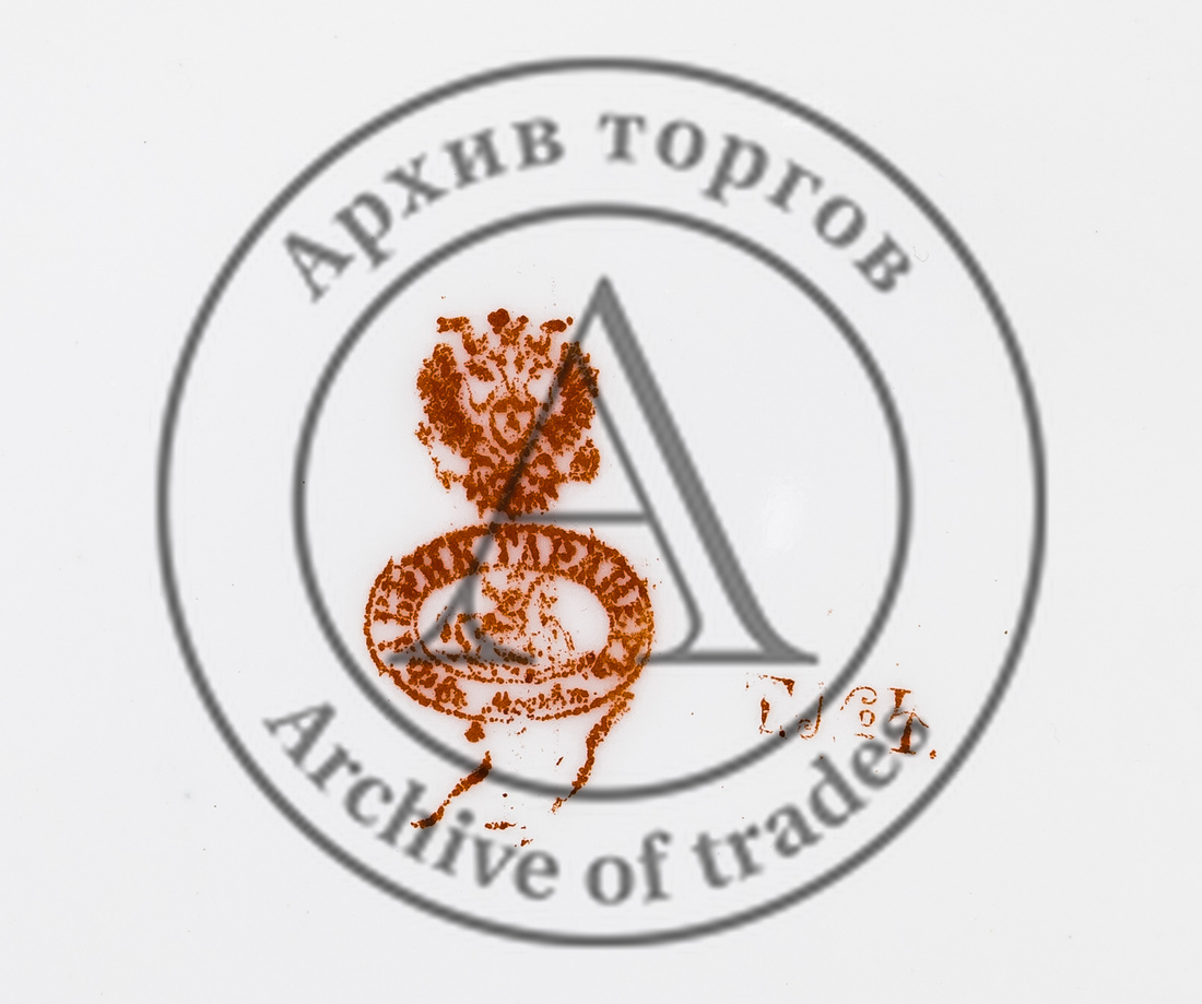 Марки: 1) двуглавый орел над двойным овалом с надписью «ФАБРИК ГАРДНЕРЪ въ Москве» с изображением московского герба (Георгий Победоносец на коне поражает копьём дракона) внутри кольца, ниже арабская надпись (красным надглазурно); 2) «Т. № 4» (красным надглазурно); 3) «V» красным (неразборчиво).