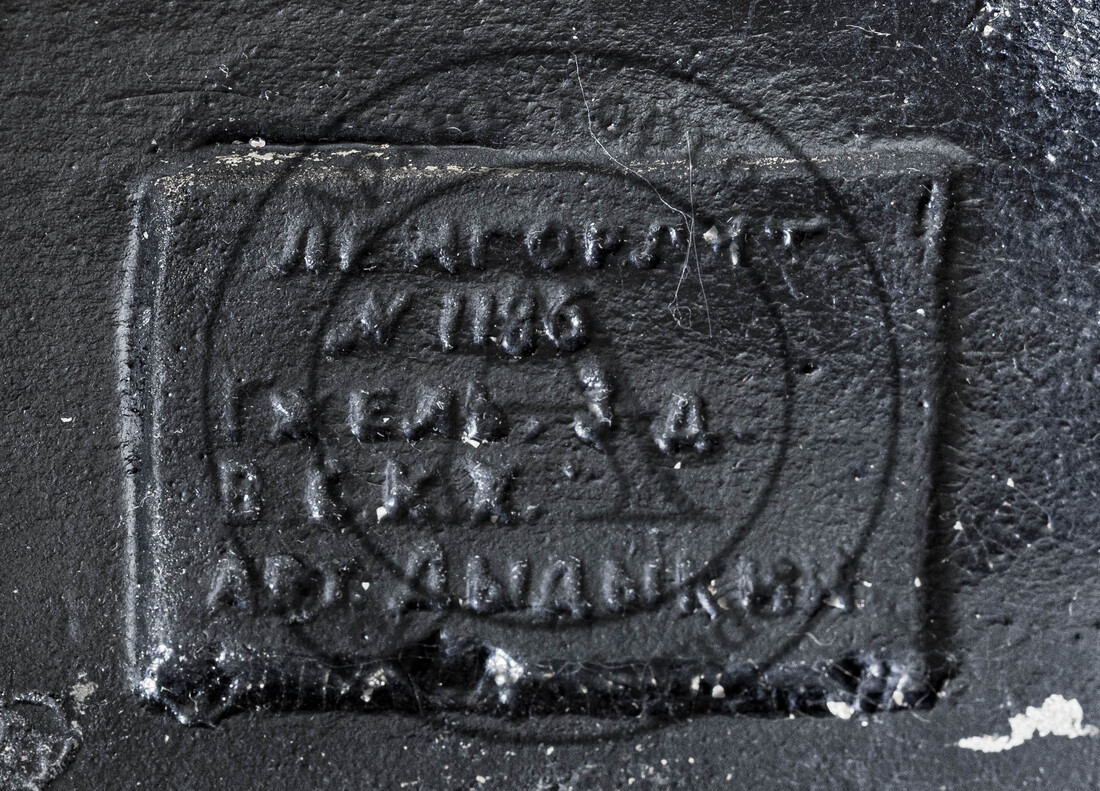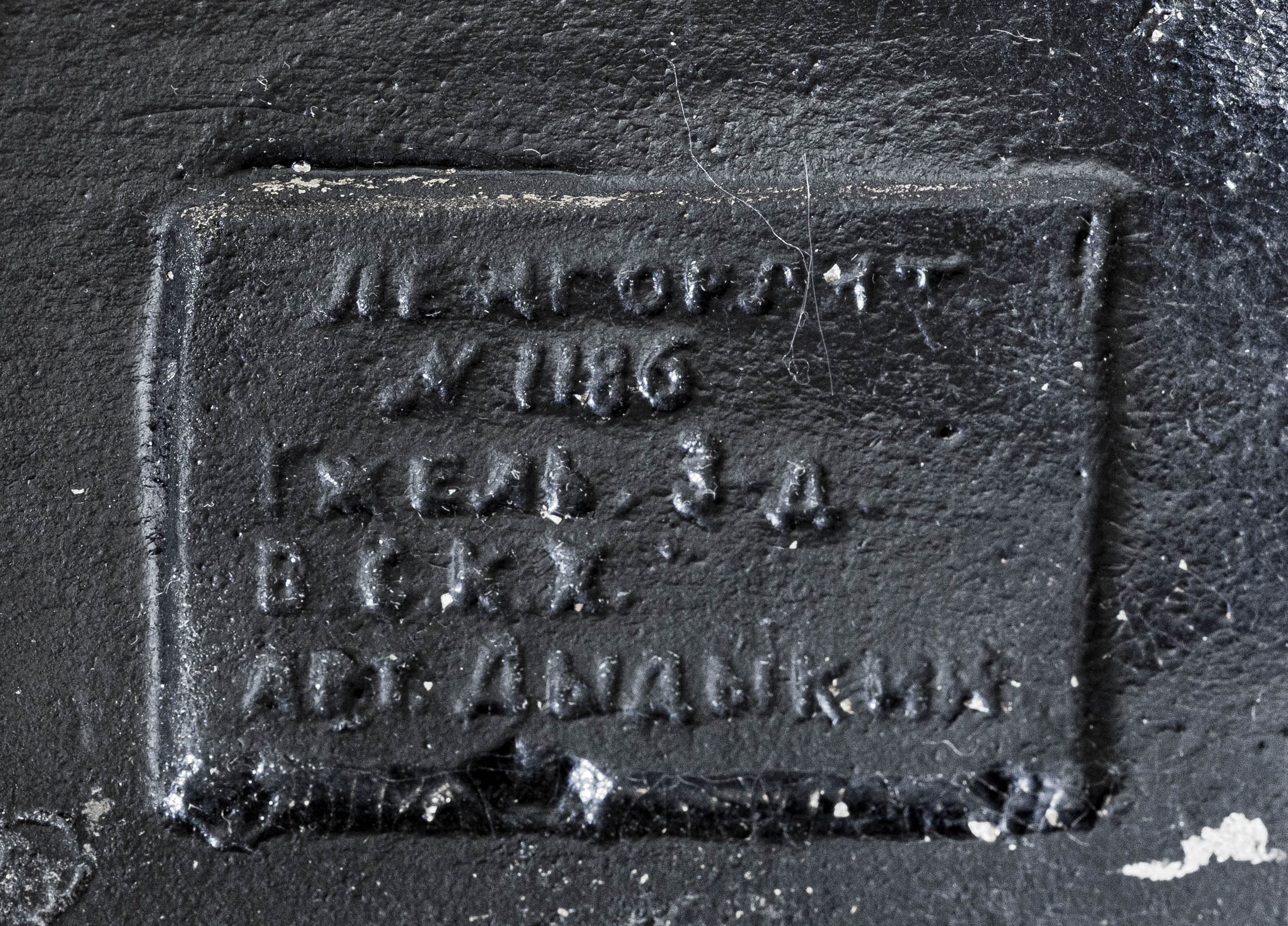 Марка в тесте со стороны спины: «ЛЕНГОРЛИТ // № 1186 // ГЖЕЛЬ З-Д // В.С.К.Х. // Авт. Дыдыкин».