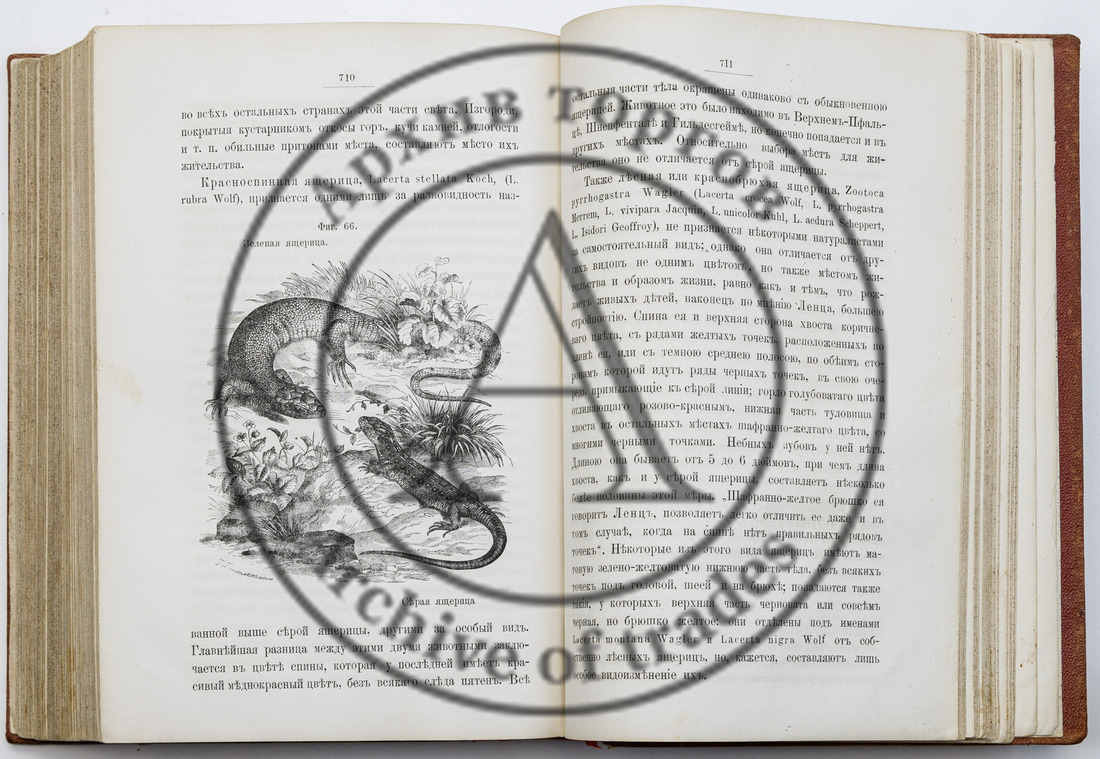Сохранность: реставрация форзаца и нахзаца; загрязнения оборотной обложки; трещина в блоке перед титульным листом; загрязнения некоторых листов в блоке; утрата нескольких калек. Полный комплект иллюстраций.