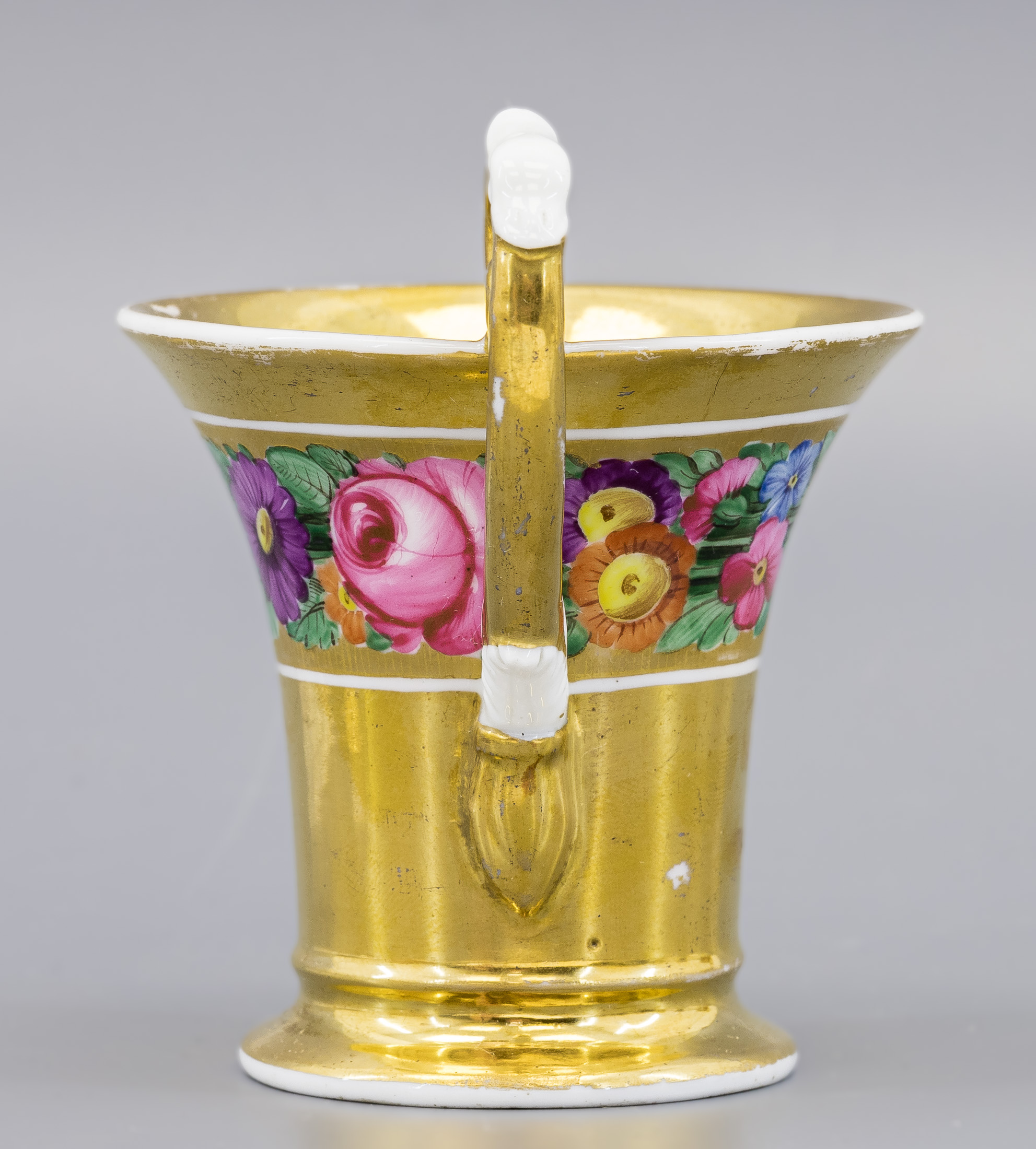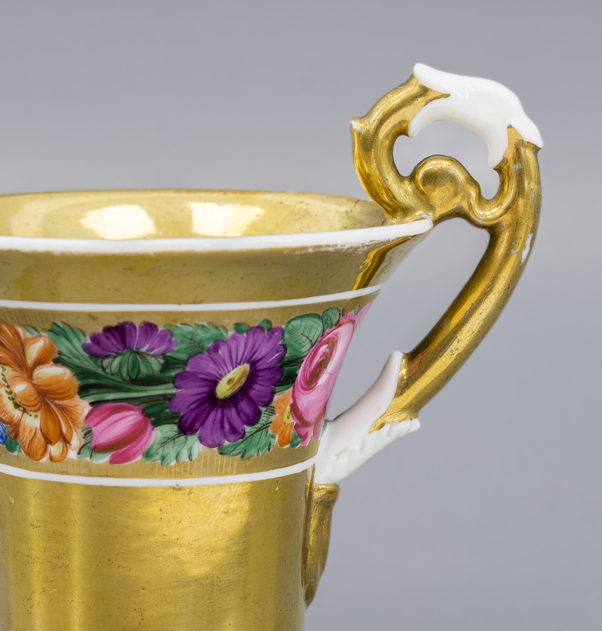Аналогичная по форме чашки имеется в Государственном Эрмитаже (инв. № ЭРФ-2777, в Госкаталоге № 28279248). Подобные цветочные мотивы встречаются во многих работах завода, например среди экспонатов ГЭ (инв. № Мз-Ч-2474, в Госкаталоге № 6545465) и ГИМ (инв. № 4415/1 фф в Госкаталоге № 20429272), (инв. № 11115/2 фф, в Госкаталоге № 20429284).