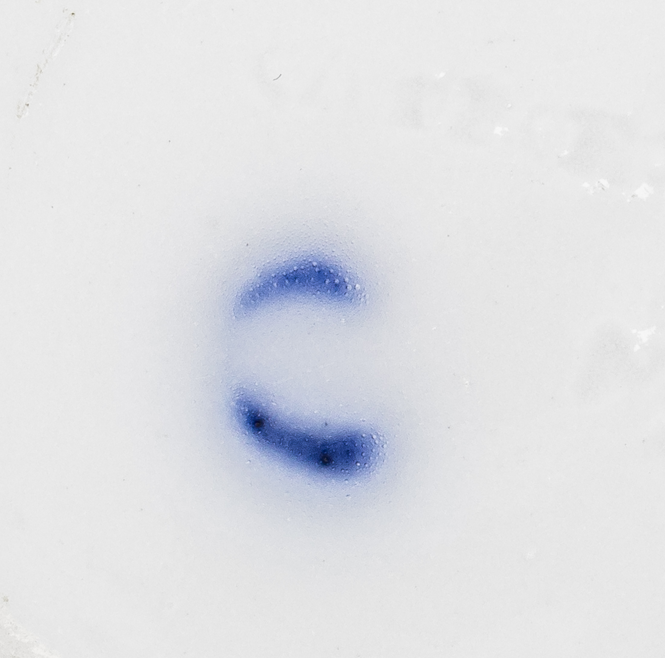 Марки: на чашке и блюдце 1) «С» кобальтом подглазурно;