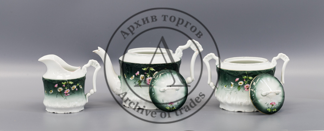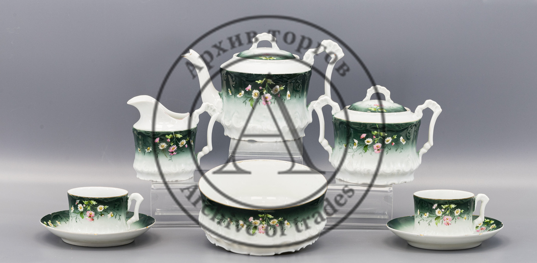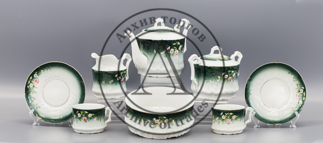 Чайный сервиз зеленого цвета с цветами (8 предметов)