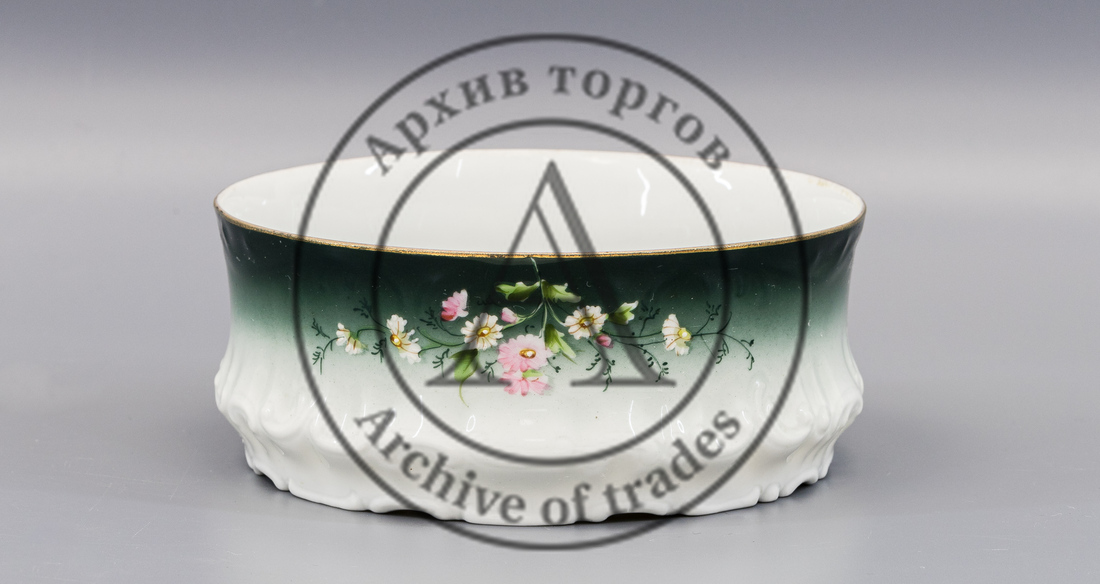 4) Полоскательница. Размеры (ДхШхВ): диаметр верха 15 см, диаметр основания 13,7 см, максимальная ширина 15,5 см, высота 6,5 см. Сохранность: микроскольчик на ободке.