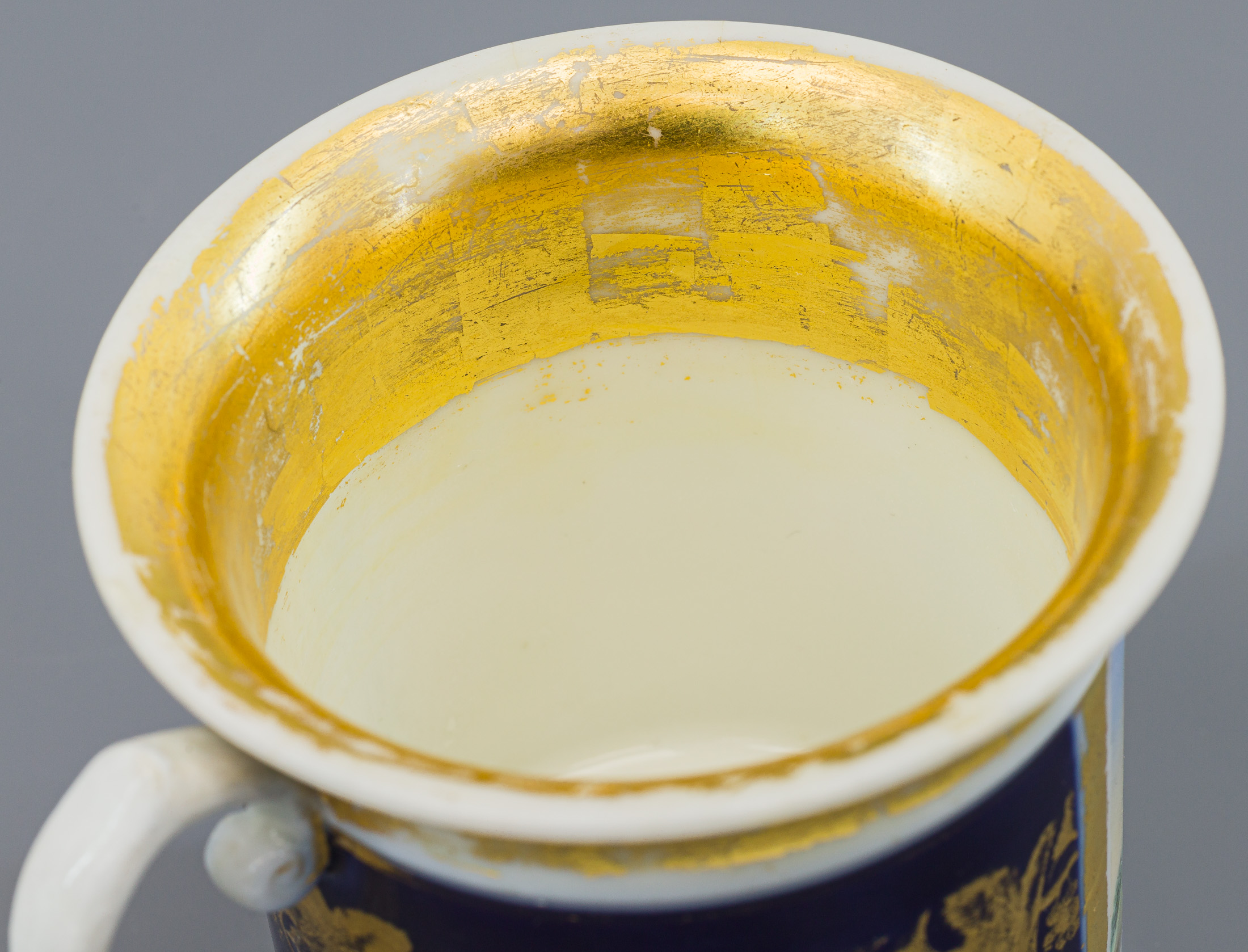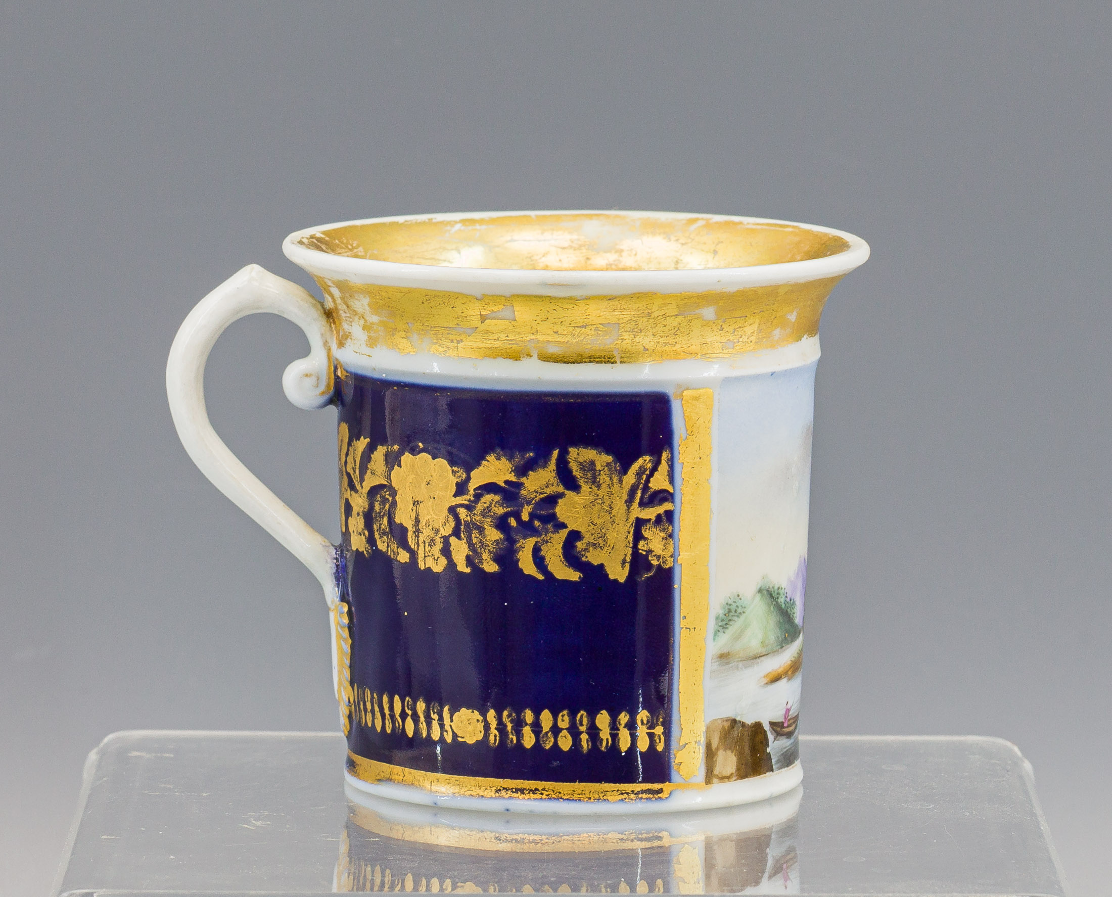 Сохранность: потертости золочения, реставрационные вмешательства (ручка, золочение, склейка двух частей).