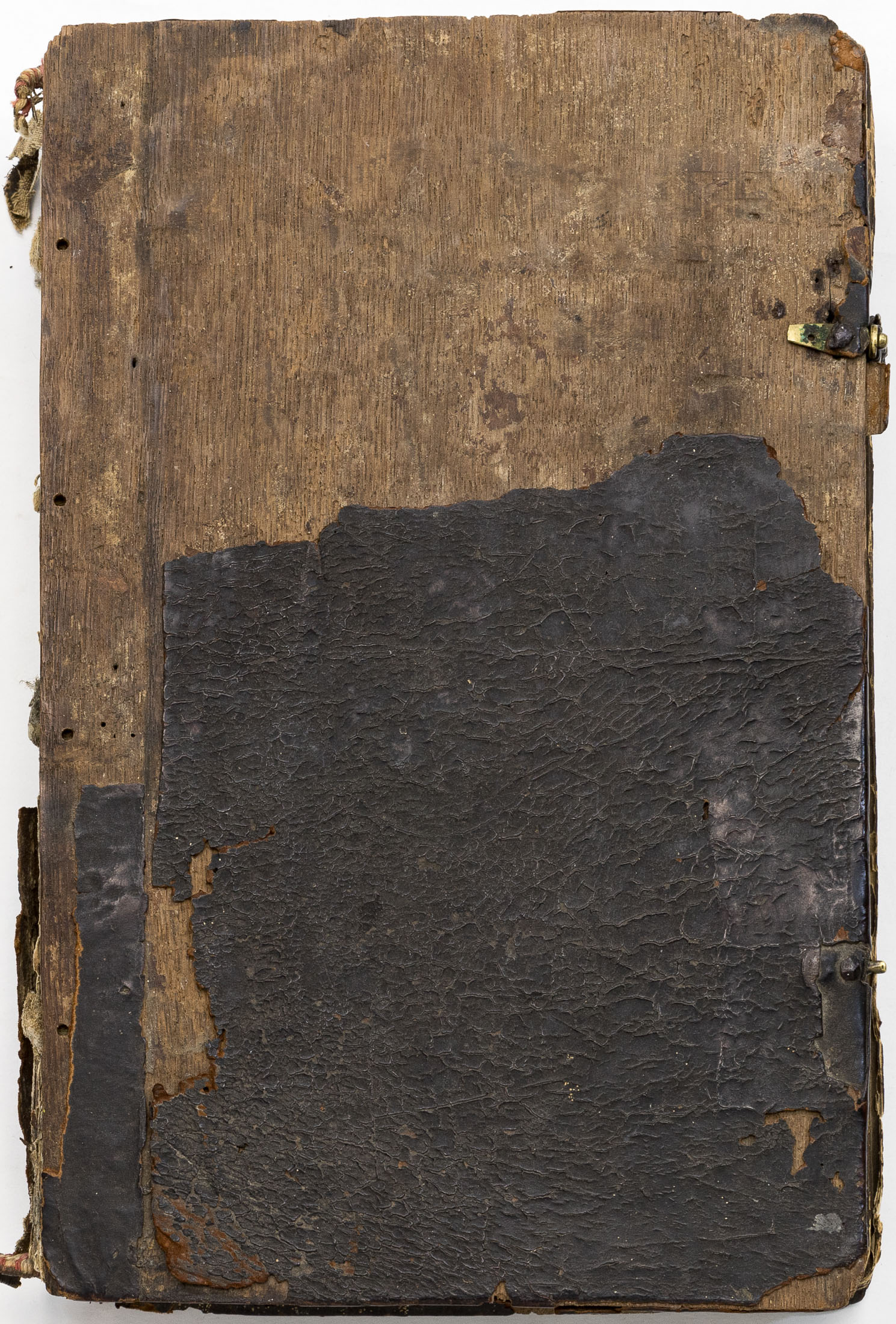 Сохранность: утрата корешка, одной застежки и больших фрагментов кожи на переплете; верхняя крышка переплета и первый лист полностью отходят от блока; владельческая надпись на форзаце; надрывы первых и последних листов от крепления застежек; следы жучка на форзаце и нахзаце; загрязнения листов, в том числе от перелистывания страниц; реставрация л. 155; утрата небольшого фрагмента л. 243, прожженного свечой.