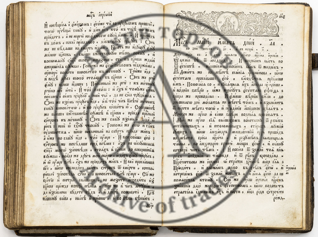 В цельнокожаном переплете на деревянных досках. Церковнославянский шрифт.