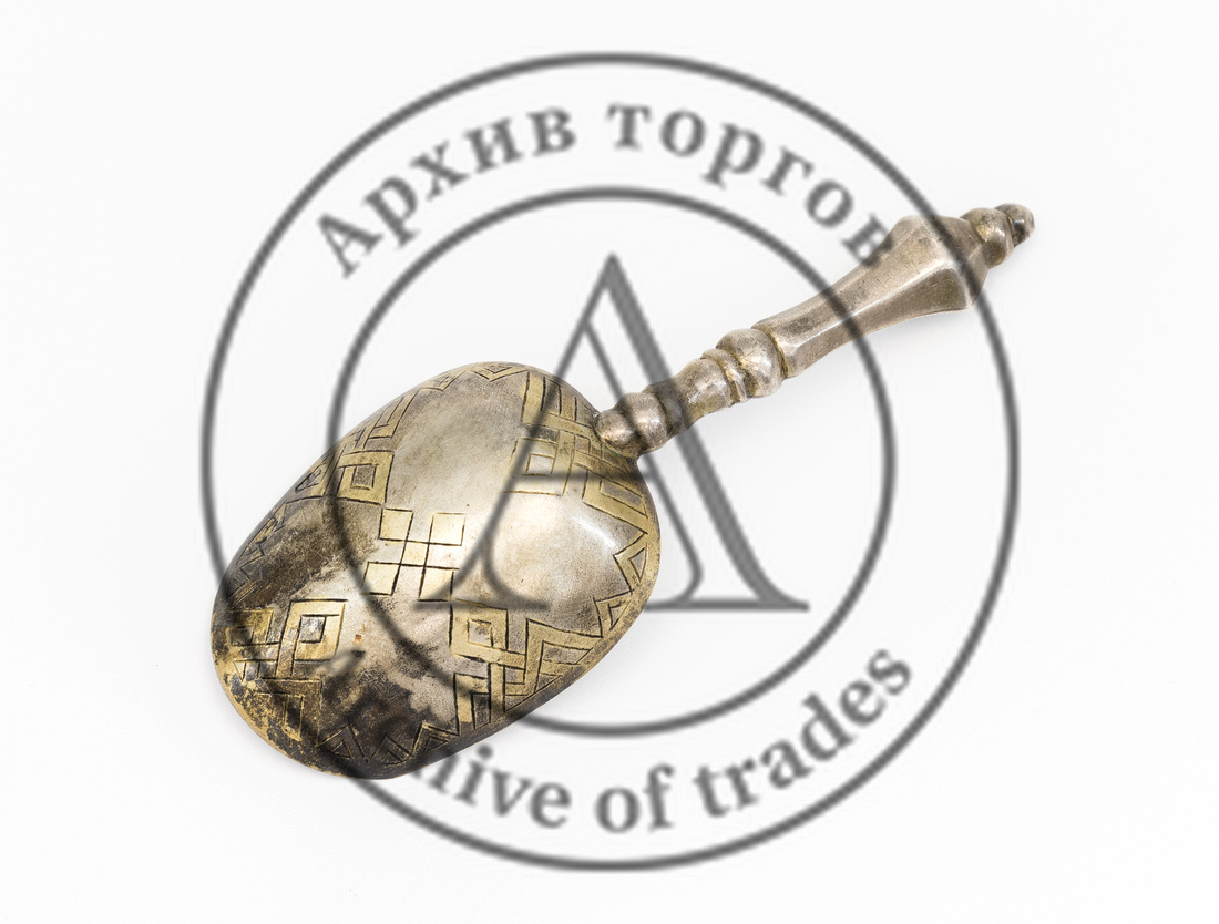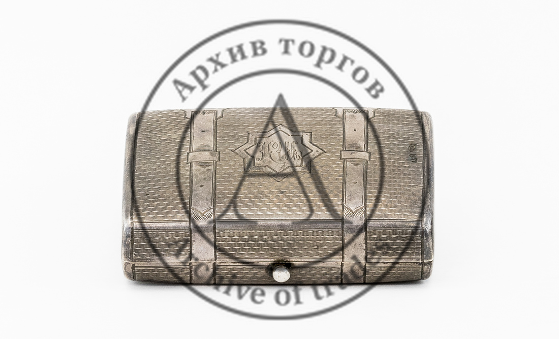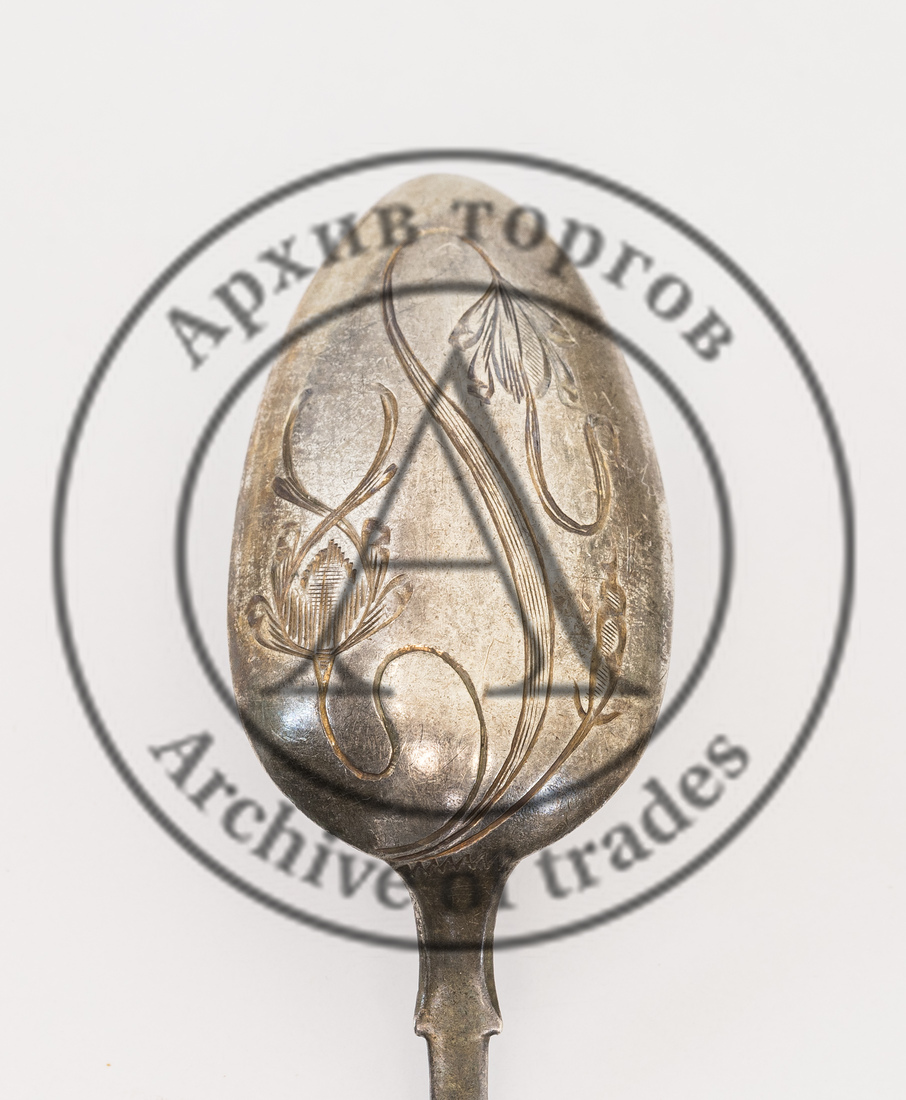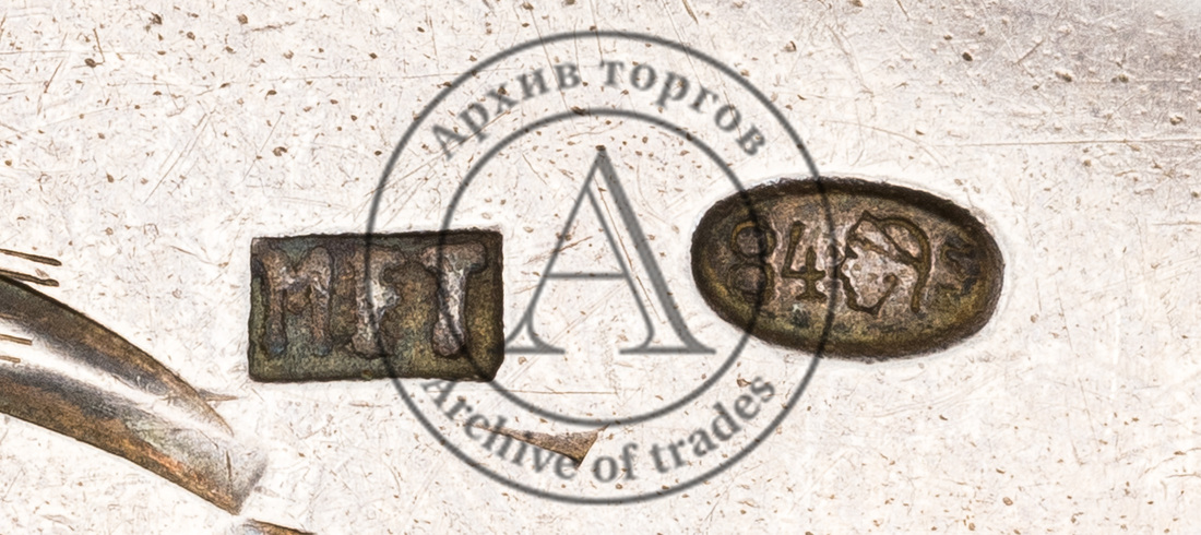 Клейма: 1) московской пробирной инспекции: 84-я проба, «женская голова в кокошнике, обращенная влево» и инициалы «ИЛ» (пробирного мастера Ивана Лебедкина); 2) именник «МFТ» в прямоугольном щитке.