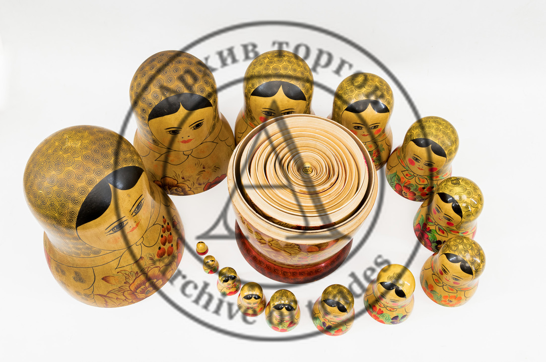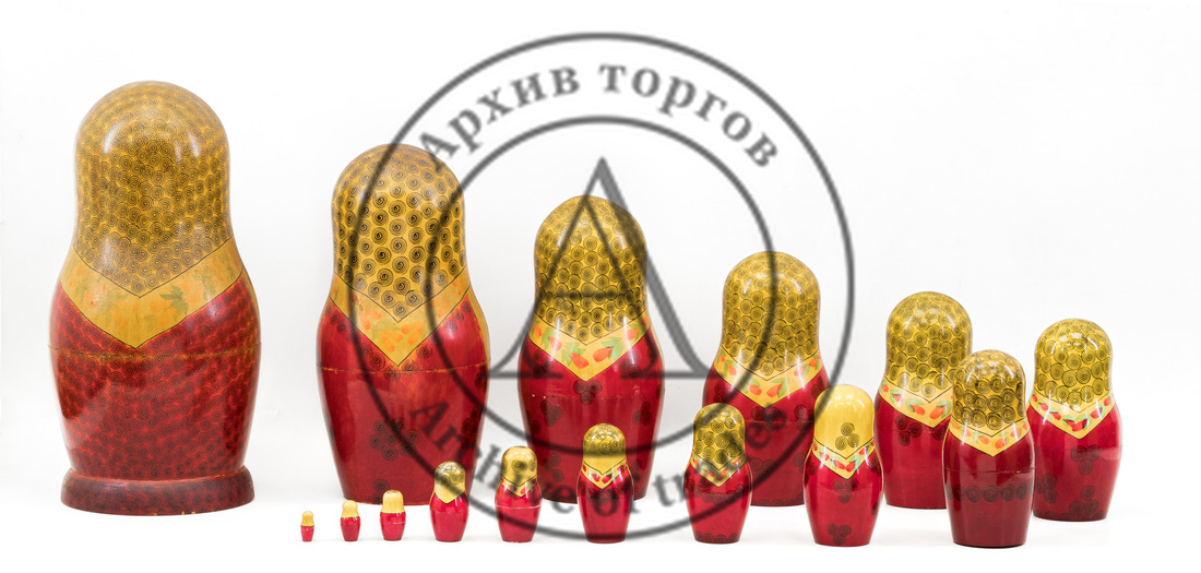 Размеры: высота самой большой матрёшки 40 см, самой маленькой — 2,5 см.