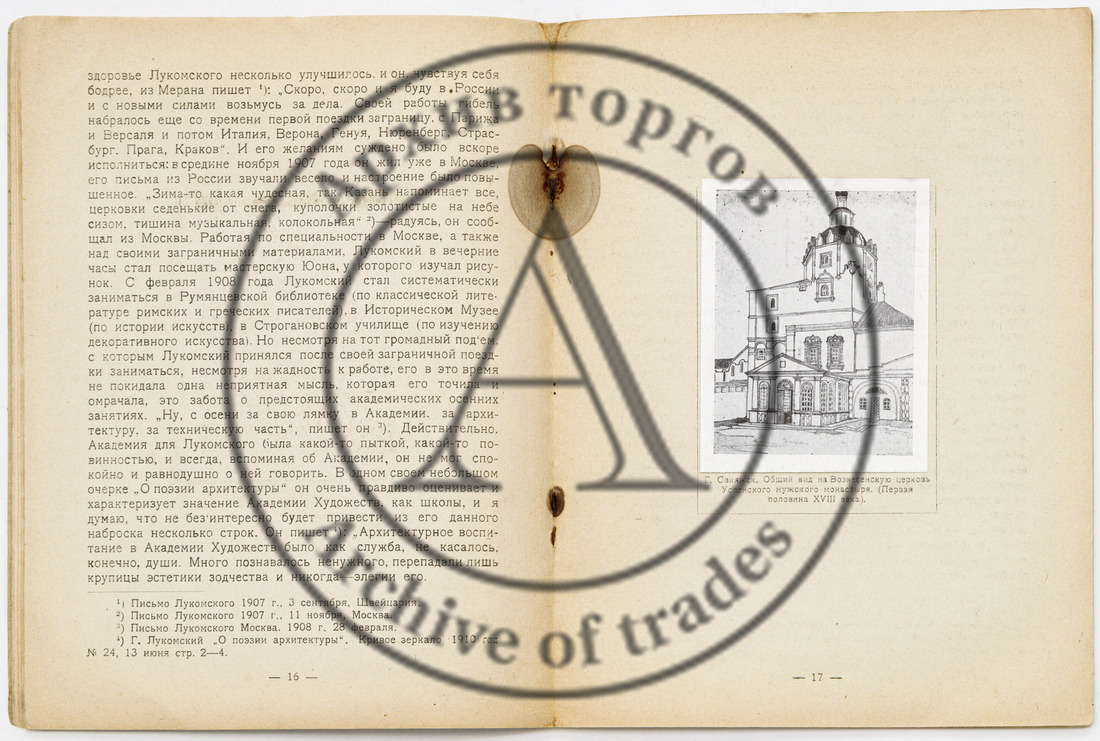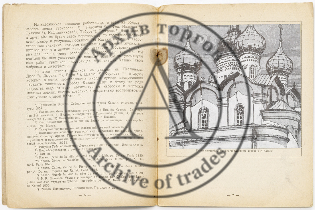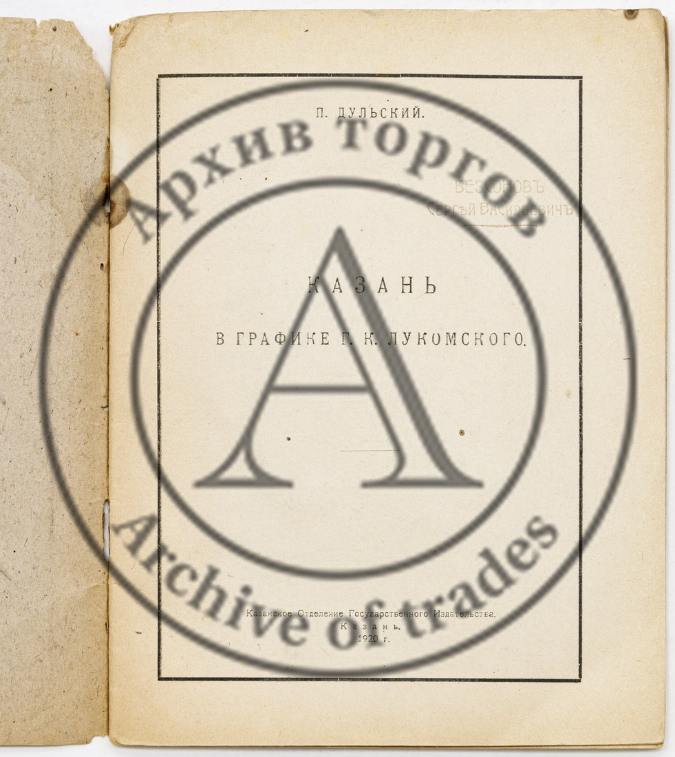 Сохранность: надрыв в верхней части корешка; ржавчина в местах крепления скрепок; штампы и пометки книжных магазинов на оборотной обложке.