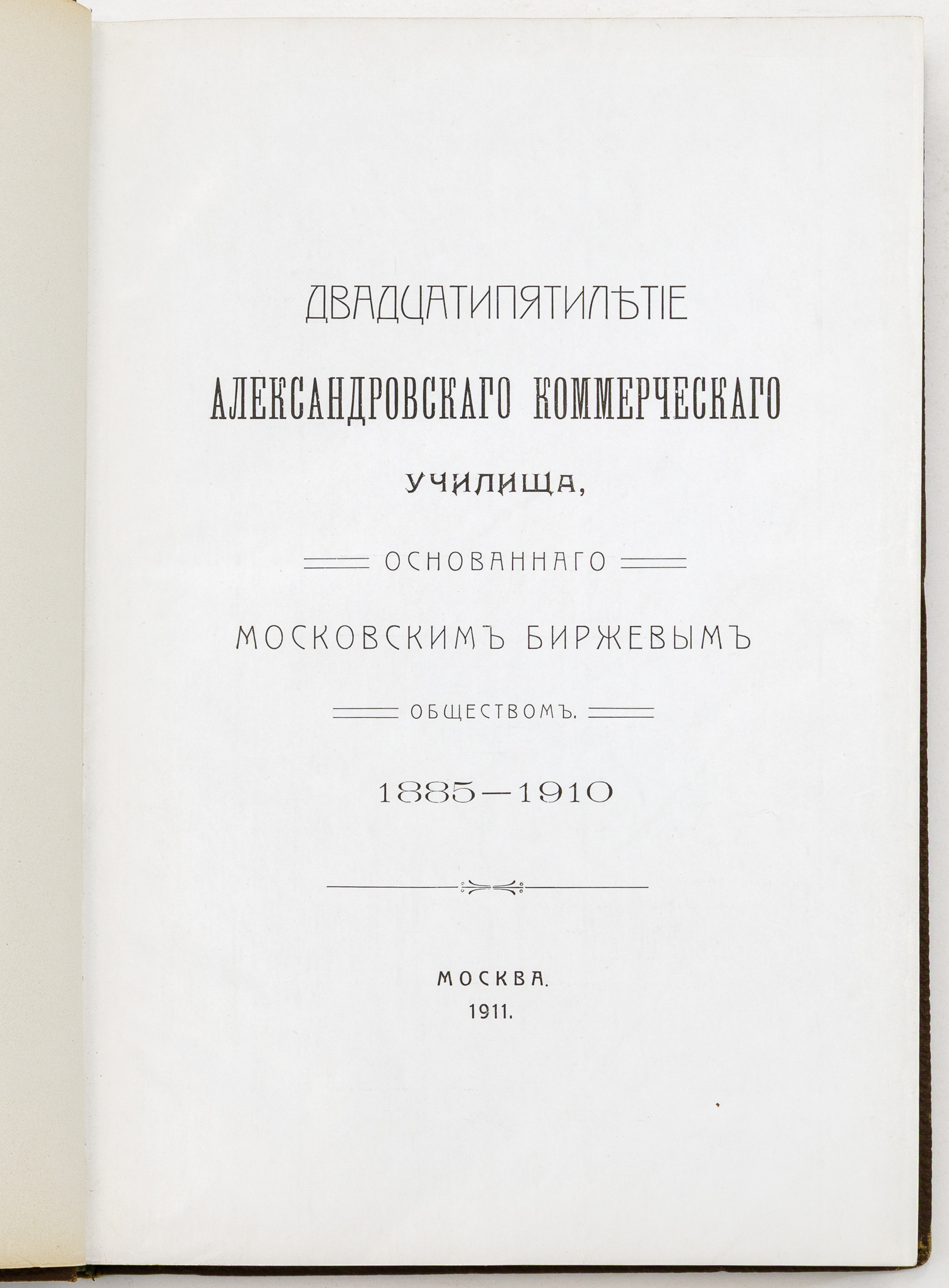Двадцатипятилетие Александровского коммерческого училища, основанного Московским биржевым обществом: 1885-1910