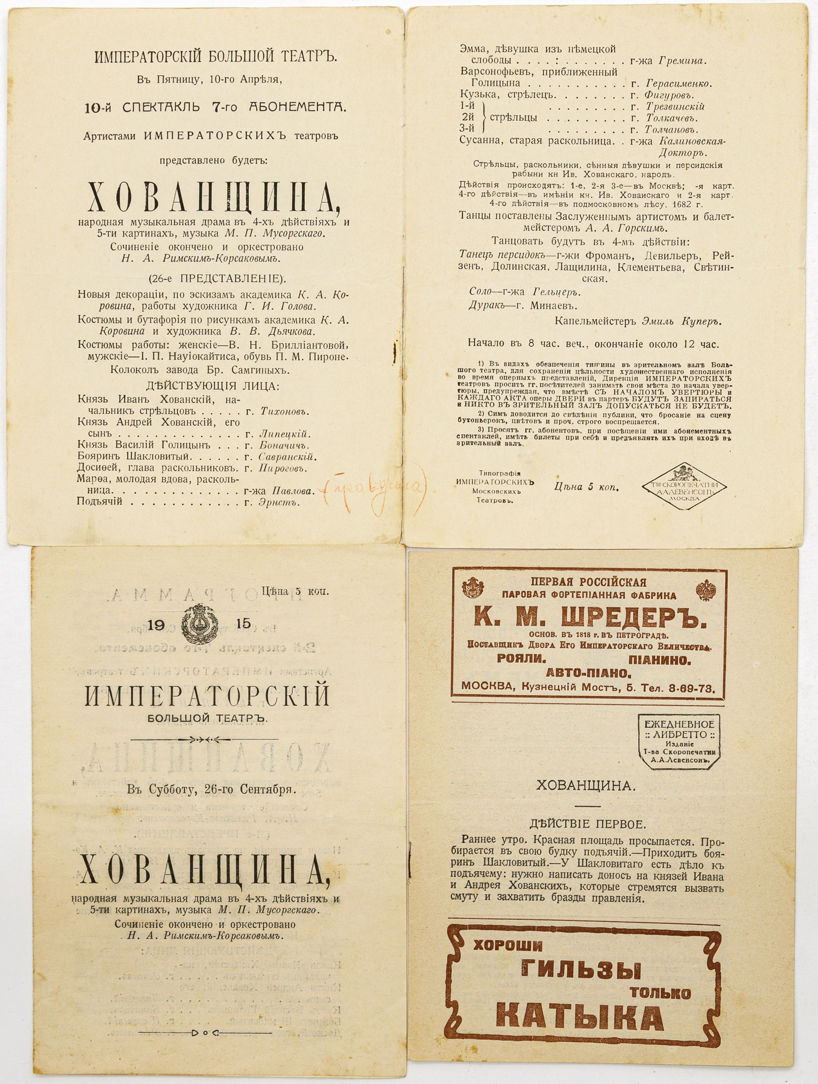 Две программы и либретто спектакля Императорского Большого театра «Хованщина»