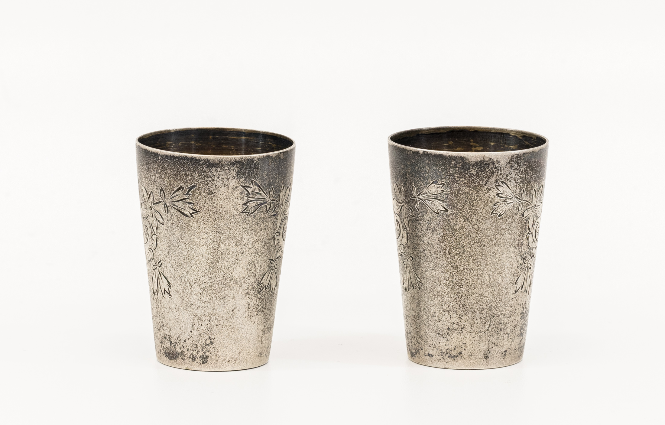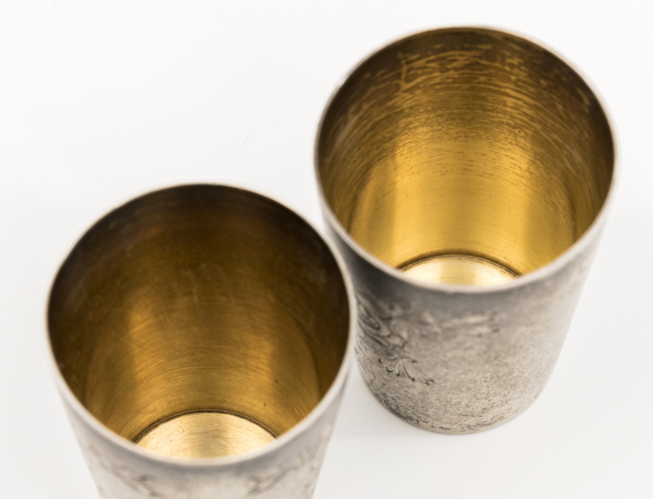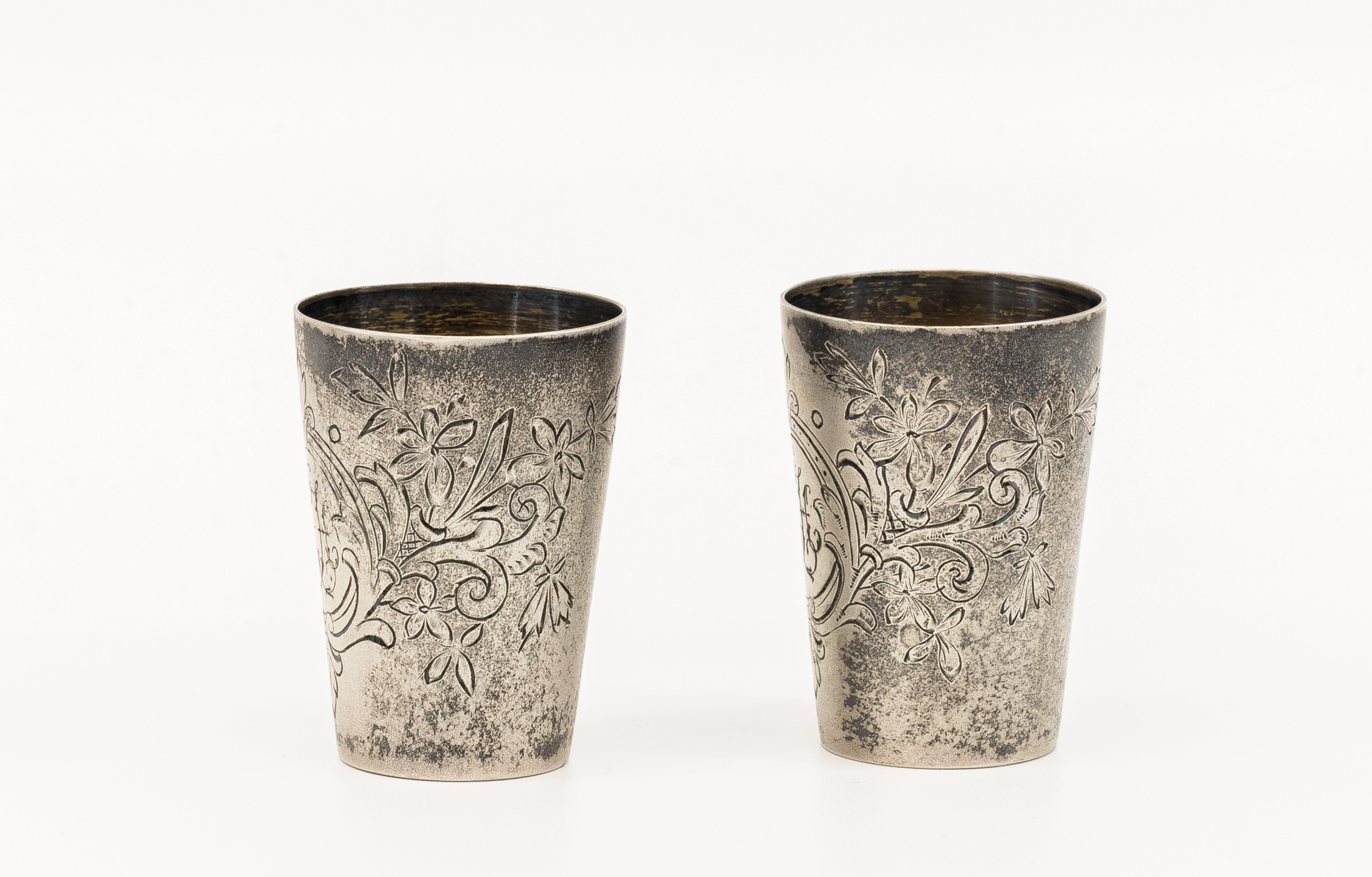 Клейма: 1) 84-я проба, «женская голова в кокошнике, обращенная влево» и инициалы «ИЛ» в овальном щитке (клеймо Московского пробирного управления, с инициалами пробирного инспектора Ивана Лебедкина 1898-1908 гг.); 2) именник «В.А.» в прямоугольном щитке;