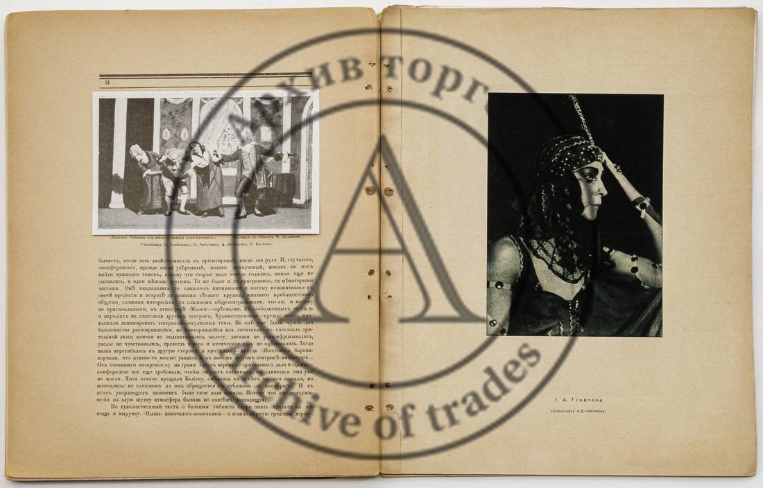 Сохранность: лицевая обложка с надрывами, фрагментарными утратами и полностью отходит от блока; корешок утрачен; блок распадается на отдельные листы; утрачены стр. 37/38 и 3 л. ил.