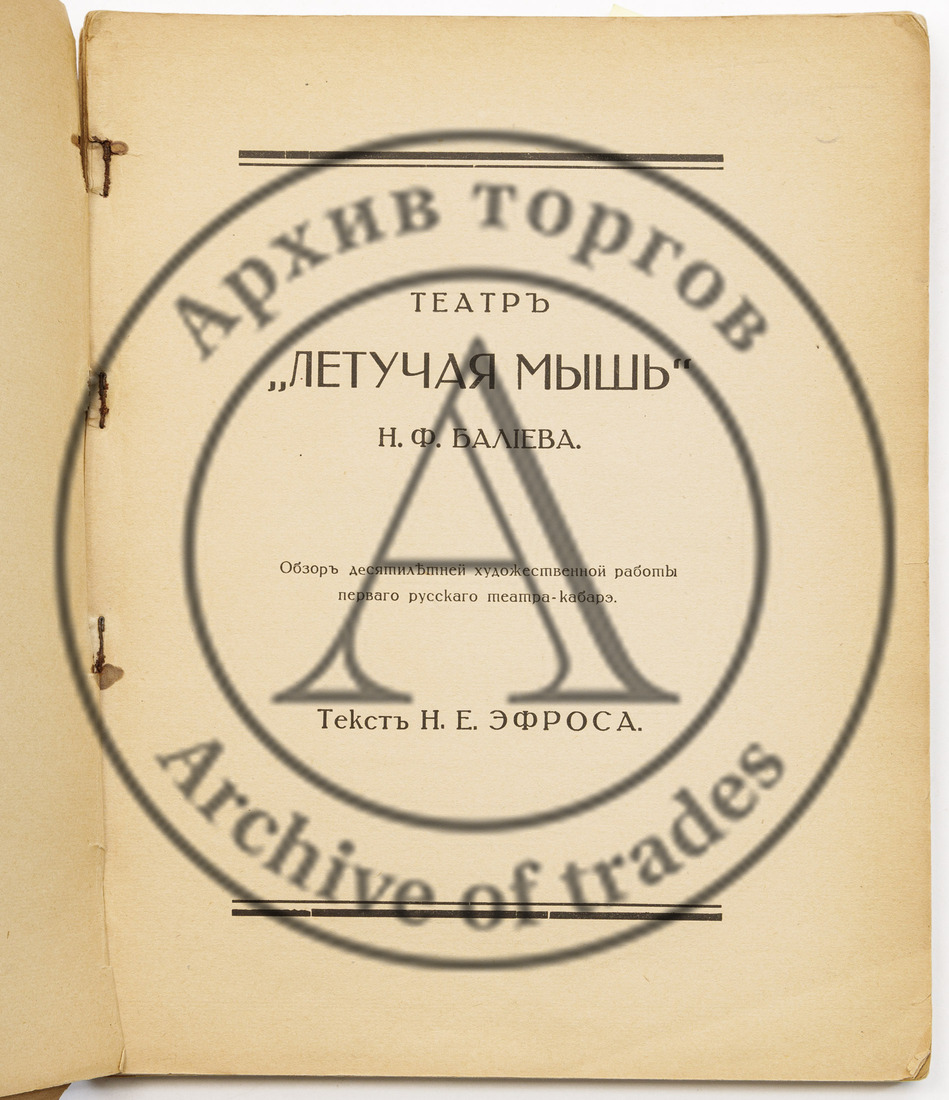 Эфрос Н.Е. Театр «Летучая мышь» Н.Ф. Балиева: Обзор десятилетней художественной работы первого русского театра-кабарэ. 1908-1918