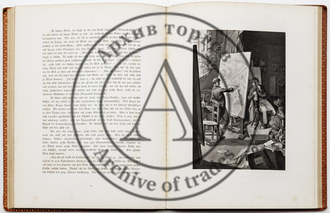 В твердом издательском переплете с золотым и полихромным тиснением. Тройной золотой обрез.