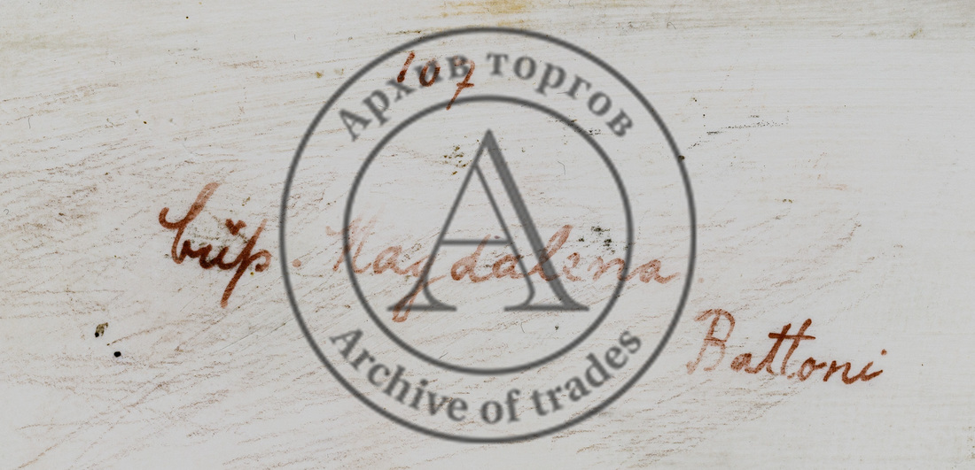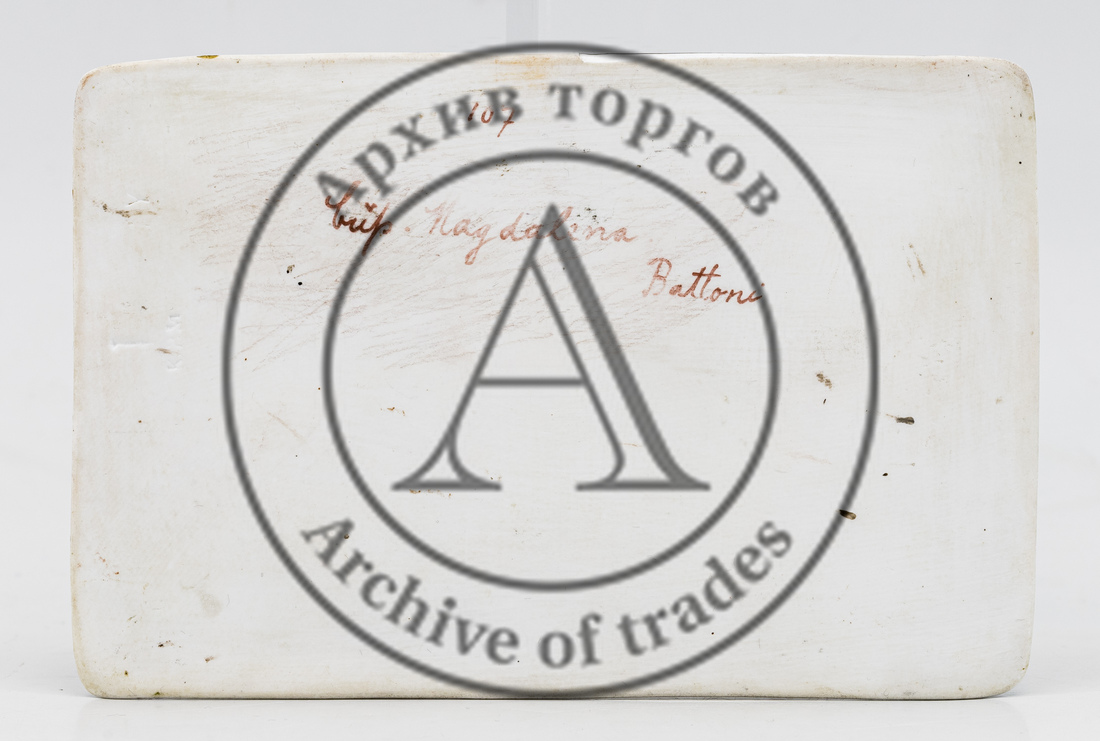 Марки: под изображением скипетра «KPM» в тесте; «107» от руки красным; на оборотной стороне от руки «büß. Magdalena // Battoni» («Кающаяся Магдалина» (сокращенно), худ. Батони).