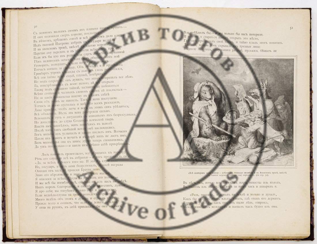 Сохранность: потертости по краям переплета; владельческий штамп на лицевой обложке; разлом в блоке; «лисьи пятна».