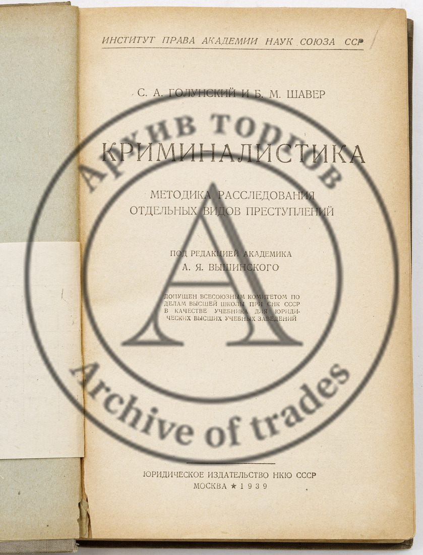 Голунский С.А., Шавер Б.М. Криминалистика: методика расследования отдельных видов преступлений / Под ред. А.Я. Вышинского