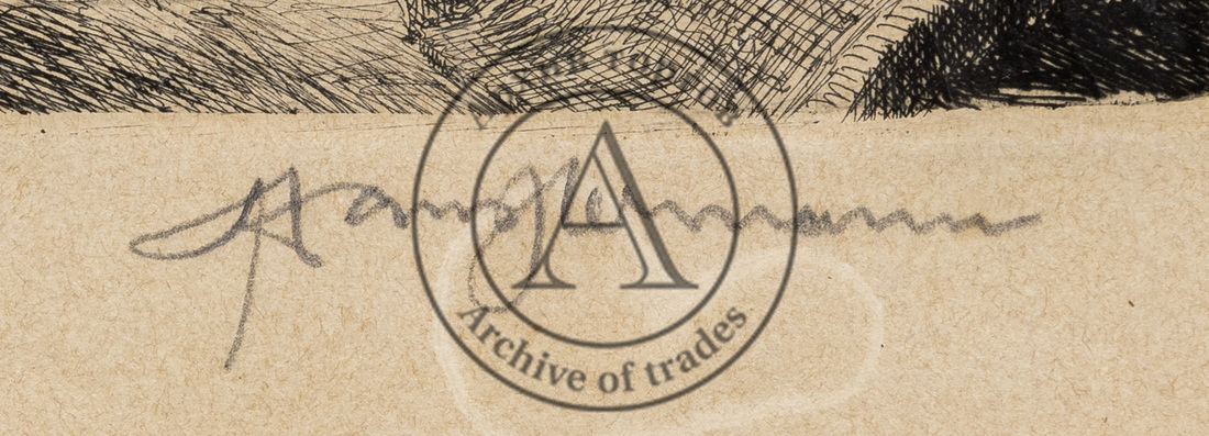 Западная Европа, конец ХIХ века. Бумага, офорт. 39 х 34 см. Неразборчивая подпись справа внизу. В раме, стекло.