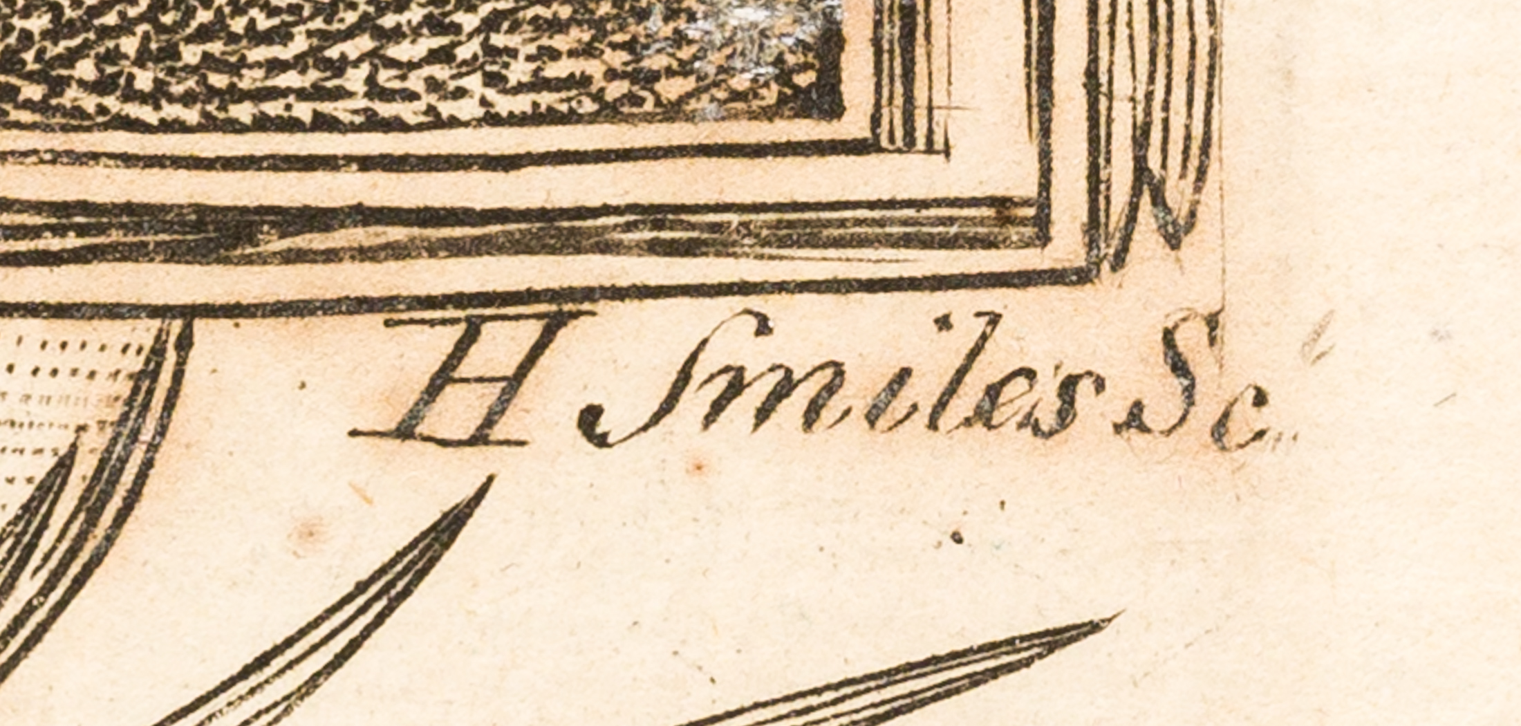 Гравер H. Smiles. Бумага, офрот. 33 Х 22 см (в свету). Паспарту. Лисьи пятна.