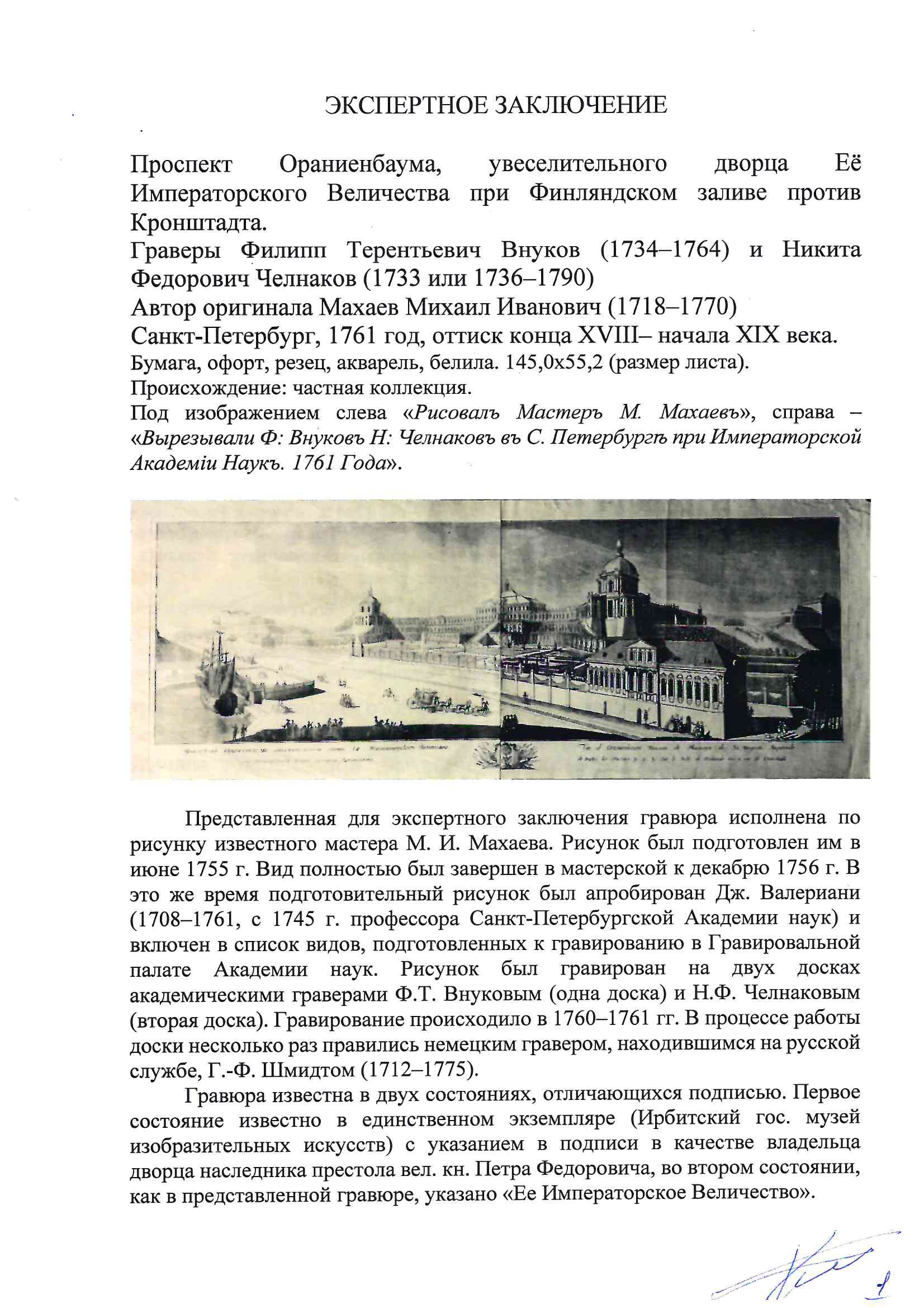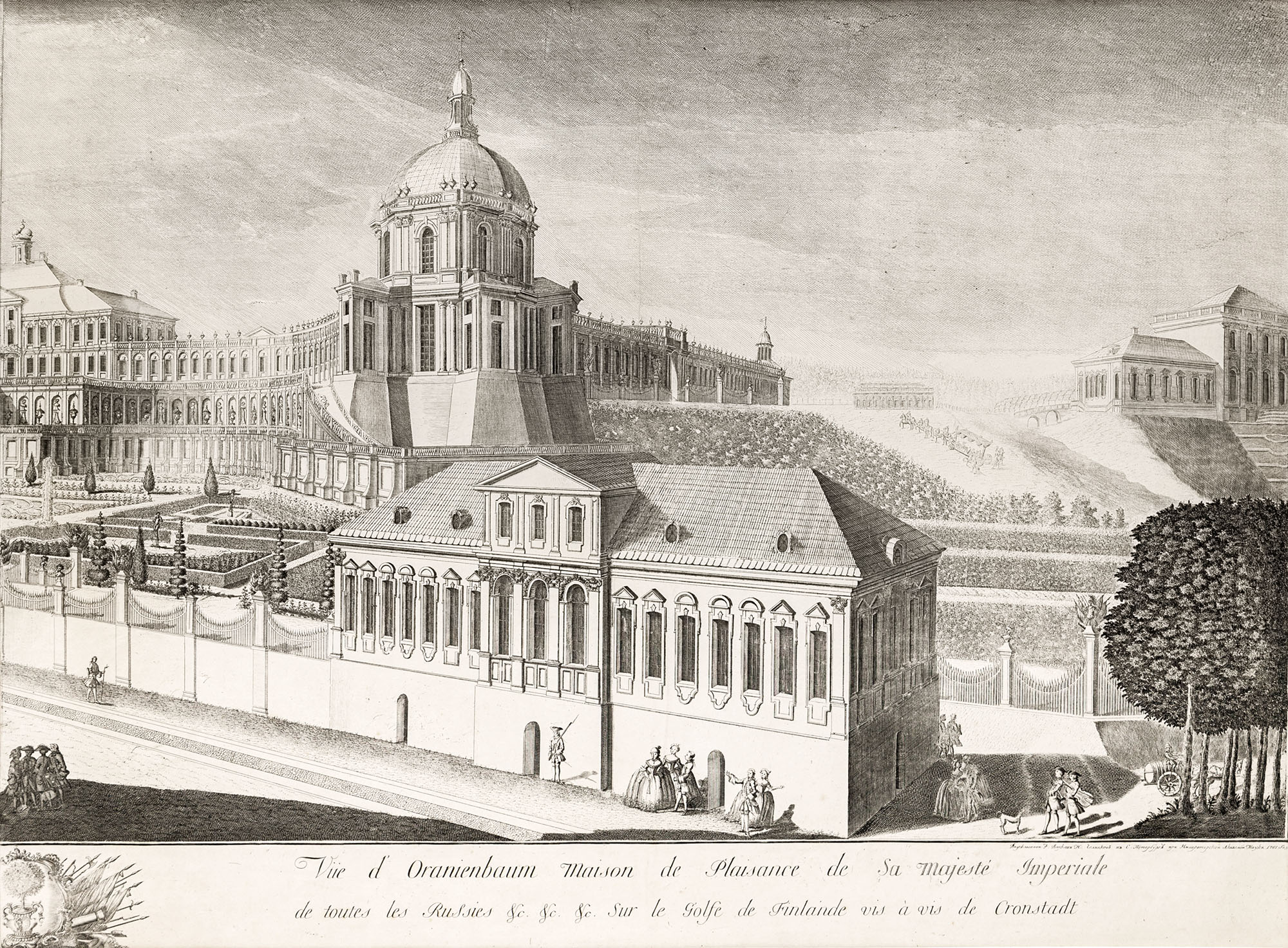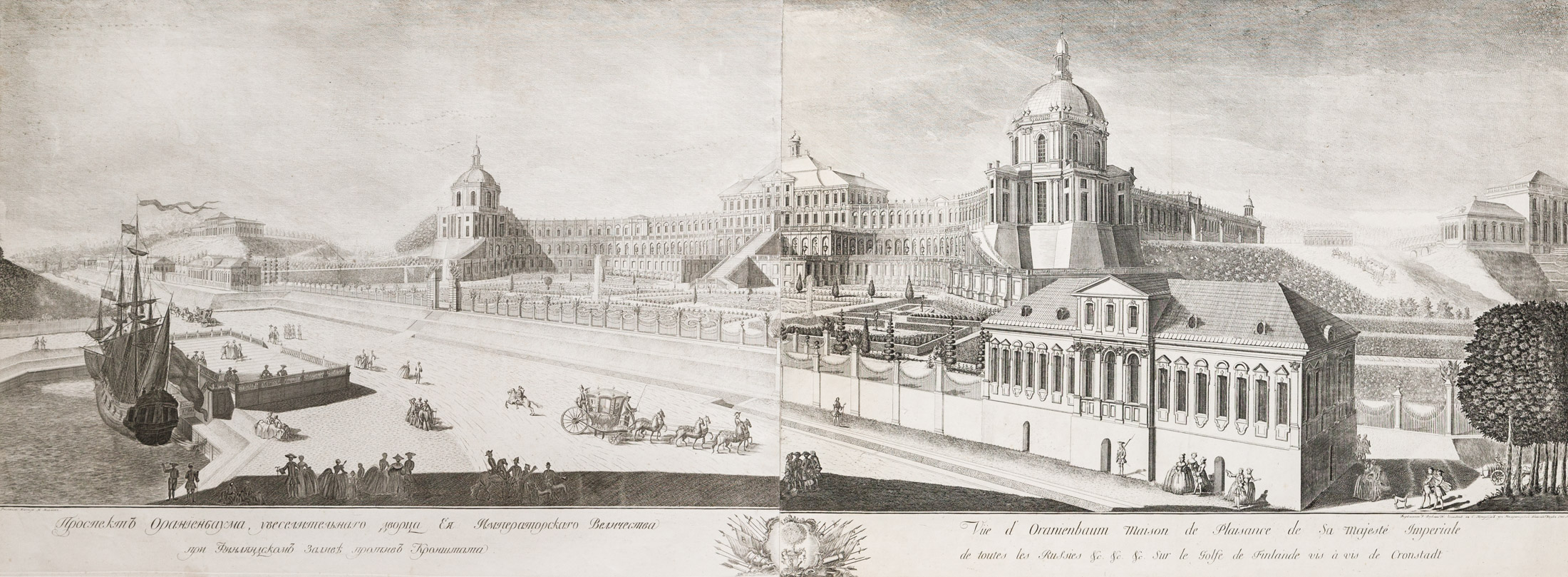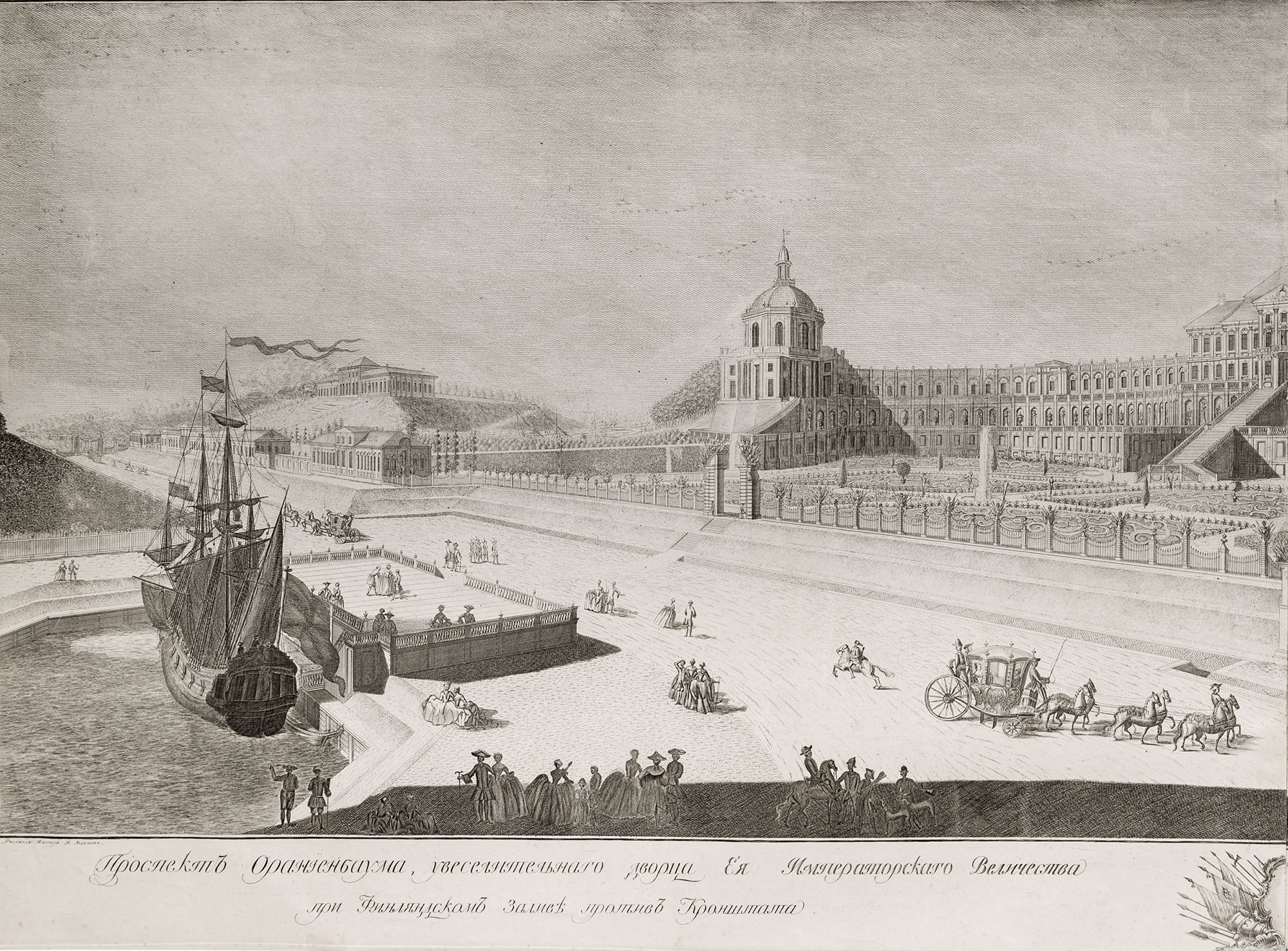 Гравюра «Проспект Ораниенбаума, увеселительного дворца Её Императорского Величества при Финляндском заливе против Кронштадта»