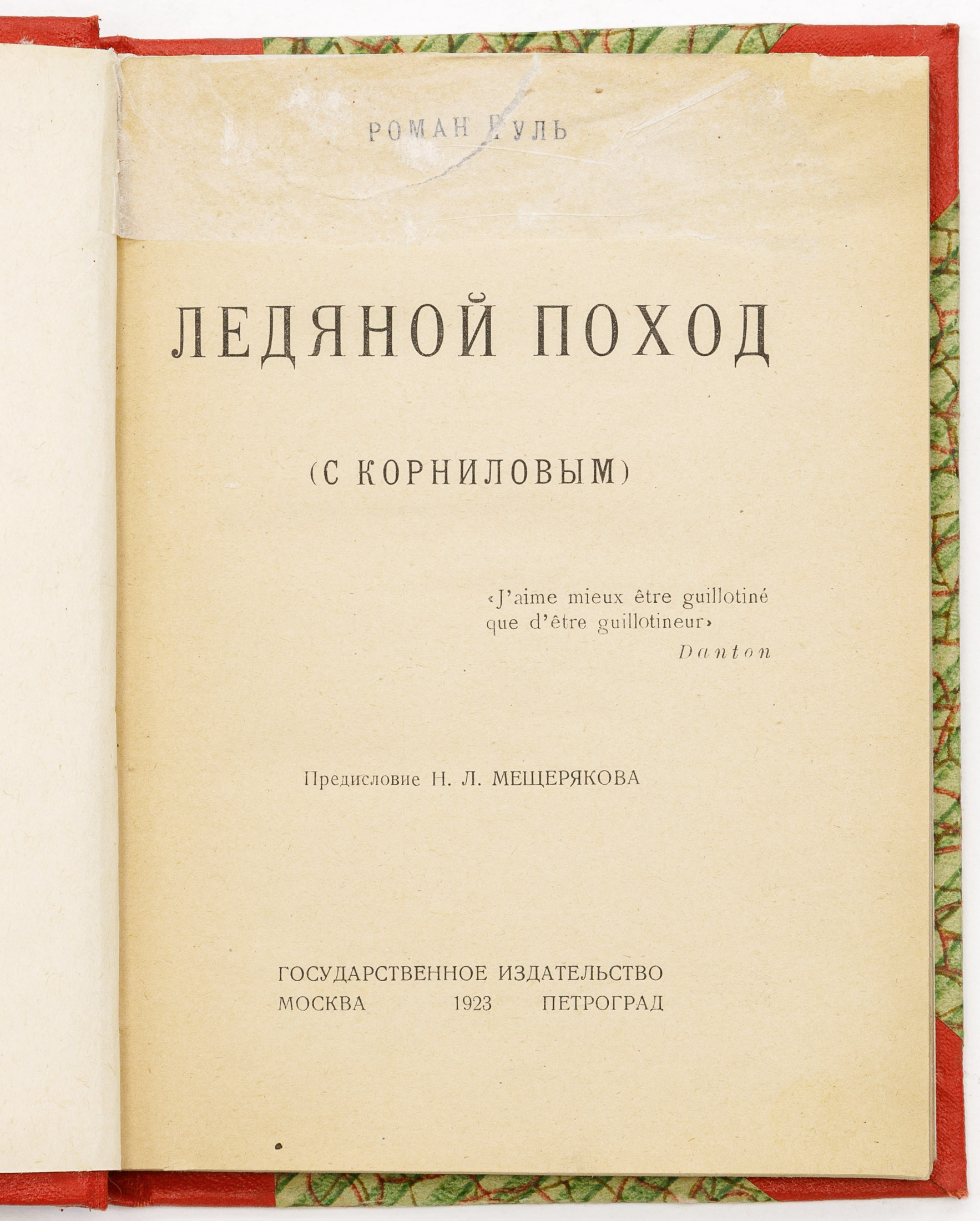 Гуль Р. Ледяной поход (с Корниловым) / Предисл. Н.Л. Мещерякова