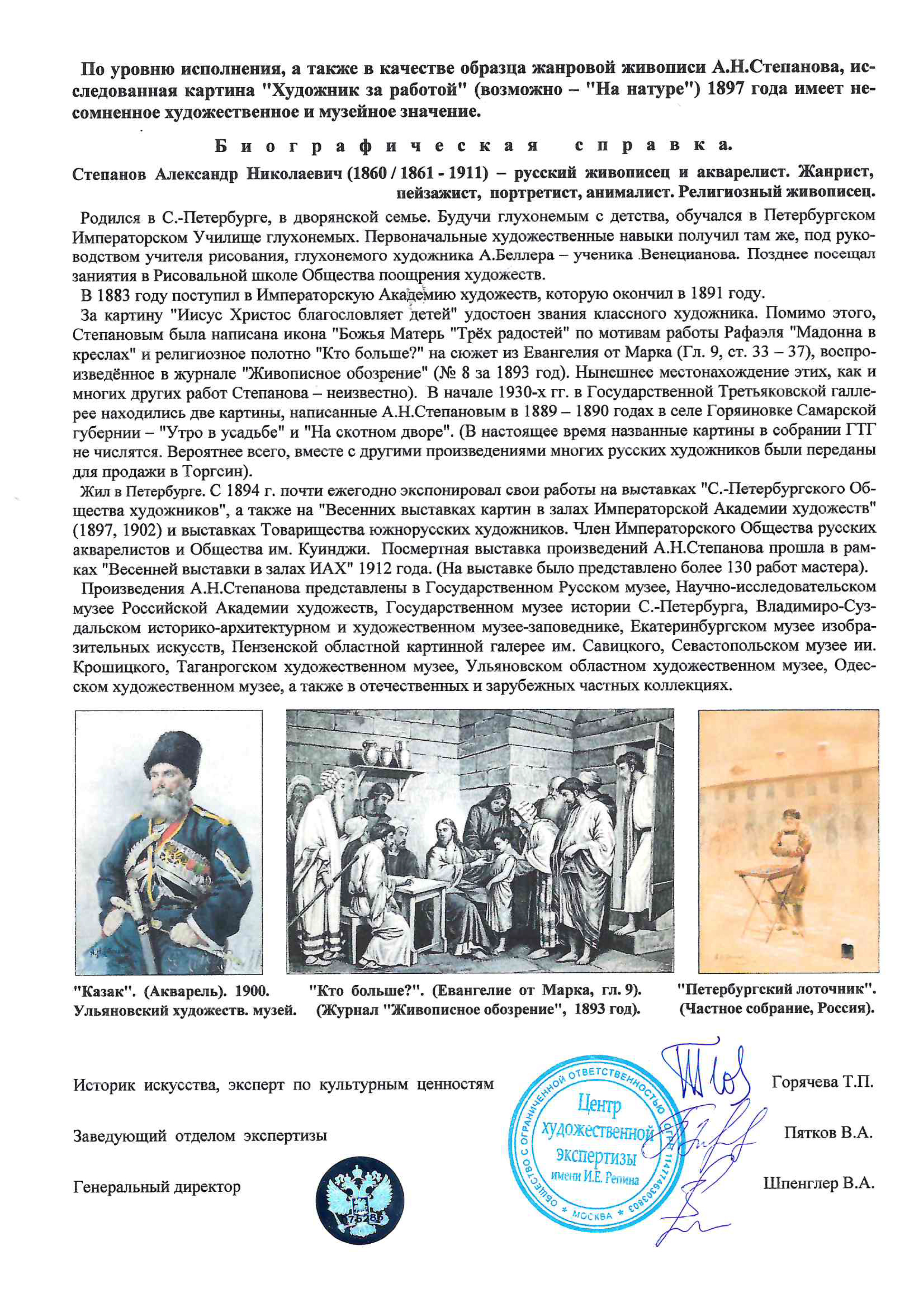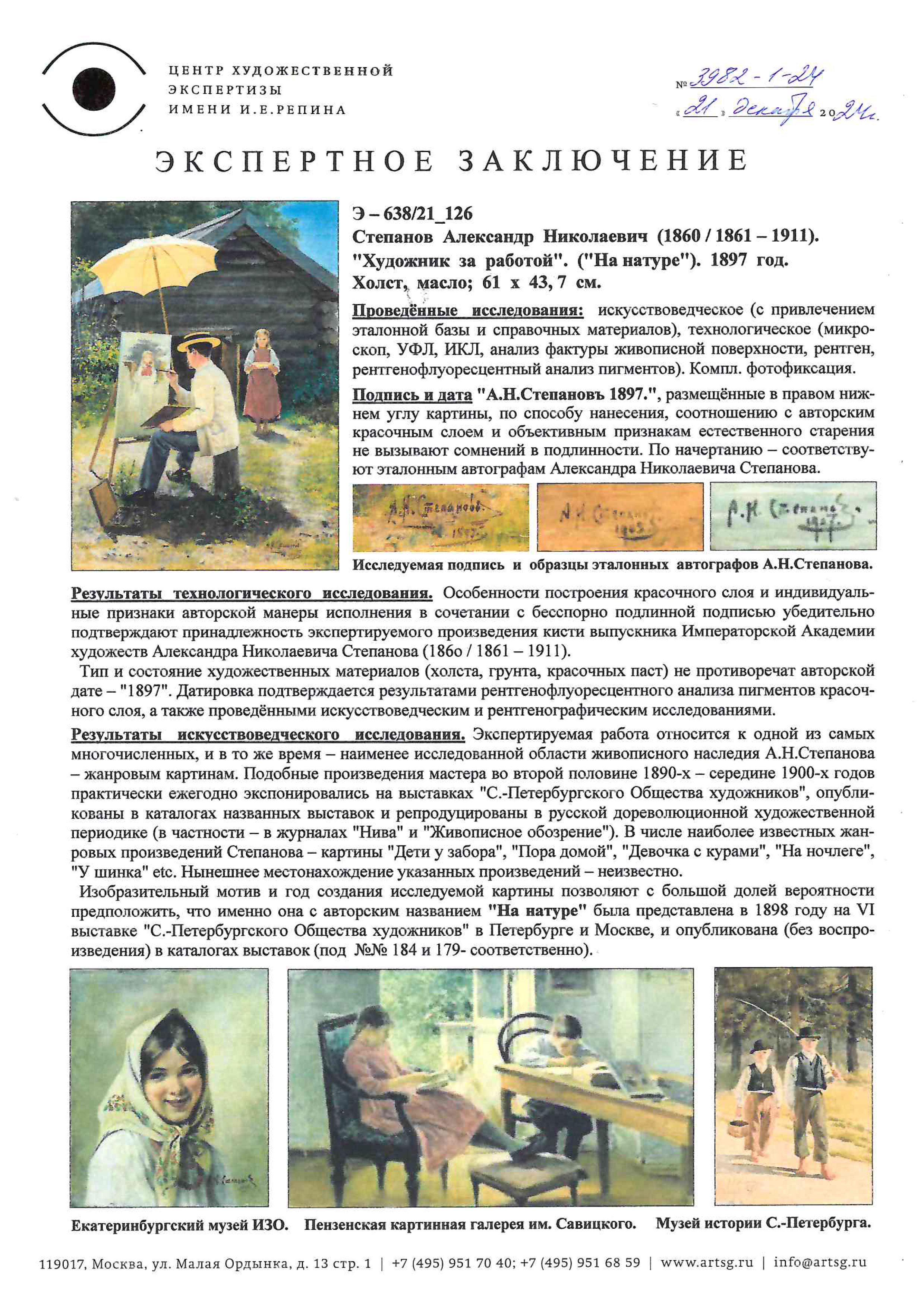 Экспертное заключение ЦХЭ им. Репина (эксперт Горячева Т.П., 2024 год)